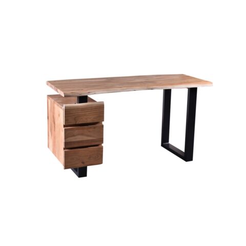 Bureau van Massief Acaciahout met 3 Lades en Zwart Metalen Frame 147 cm
