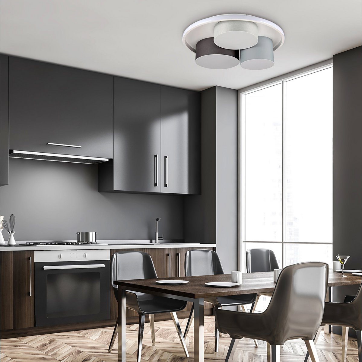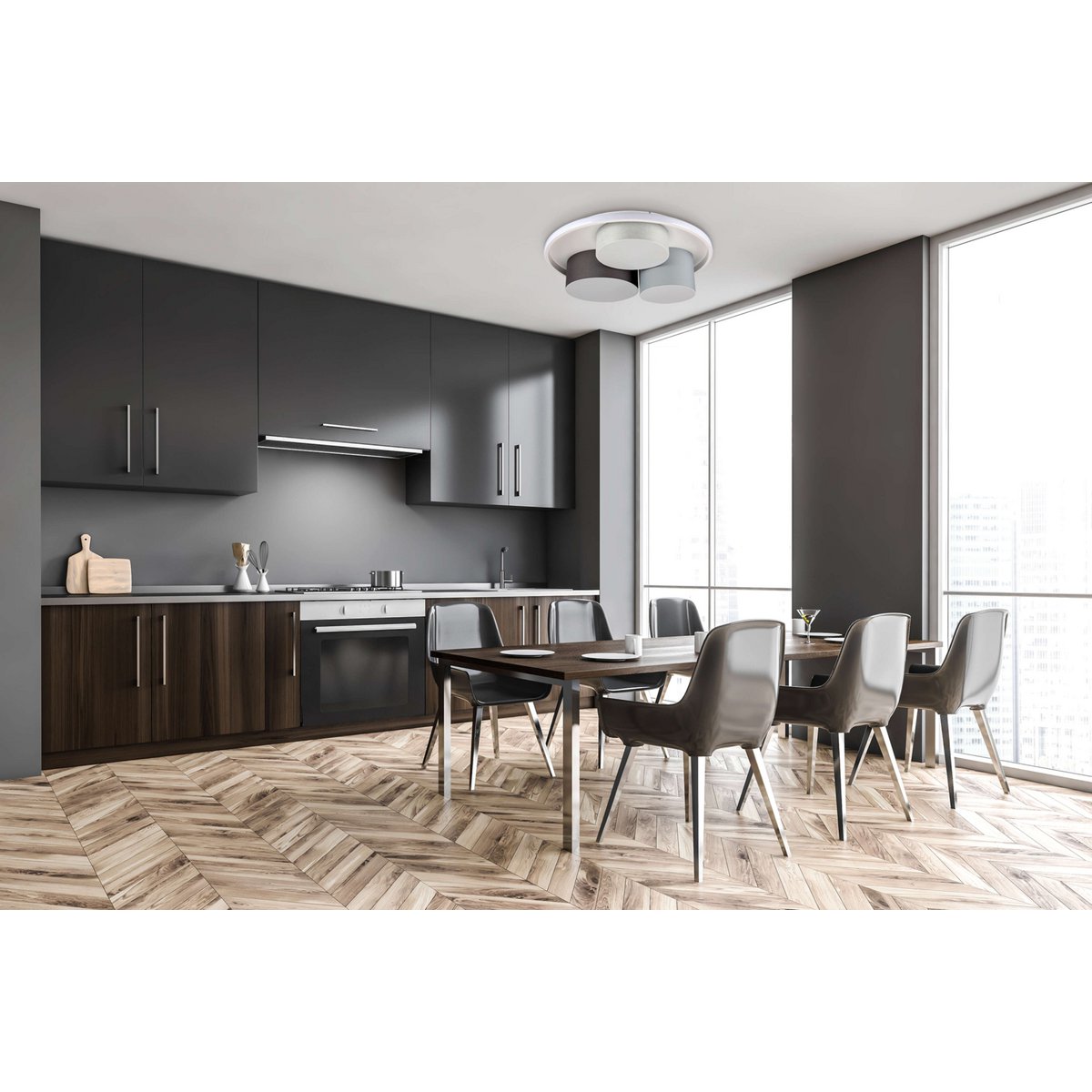 De drie hebben charme – de lamp “” is een succesvolle interactie van drie cilinders, die elk hun licht in de kamer stuurt. Met verschillende hoogten vertegenwoordigt elk van deze cilinders een onafhankelijk optisch element. Ingebed in een dienbladvorm, wordt het geheel een harmonieuze eenheid. “Eppan” is een rondje dat een opwindend element goed maakt, zowel in een kantoor als in de gang of een andere kamer.