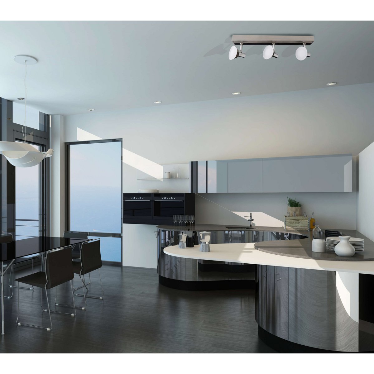 Met zijn speciale ontwerp is dit opvallende plafondlicht een echte eye -catcher. Het is perfect geschikt om geweldige poorten te plaatsen en geeft elke faciliteit een speciale touch. Met de verstelbare lampparaplu’s kan elke hoek in de kamer goed worden verlicht.