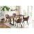 Deze 5-delige eetgroep combineert natuurlijke materialen met een luxe en moderne uitstraling. De royale eettafel is gemaakt van massief acaciahout en afgewerkt in een warme walnoottint. Het tafelblad is behandeld met OSMO hardwaxolie in een satijnen finish, wat helpt om het oppervlak te beschermen tegen water, vuil en slijtage. Het stevige zwarte U-frame geeft de tafel een strakke en stabiele basis.