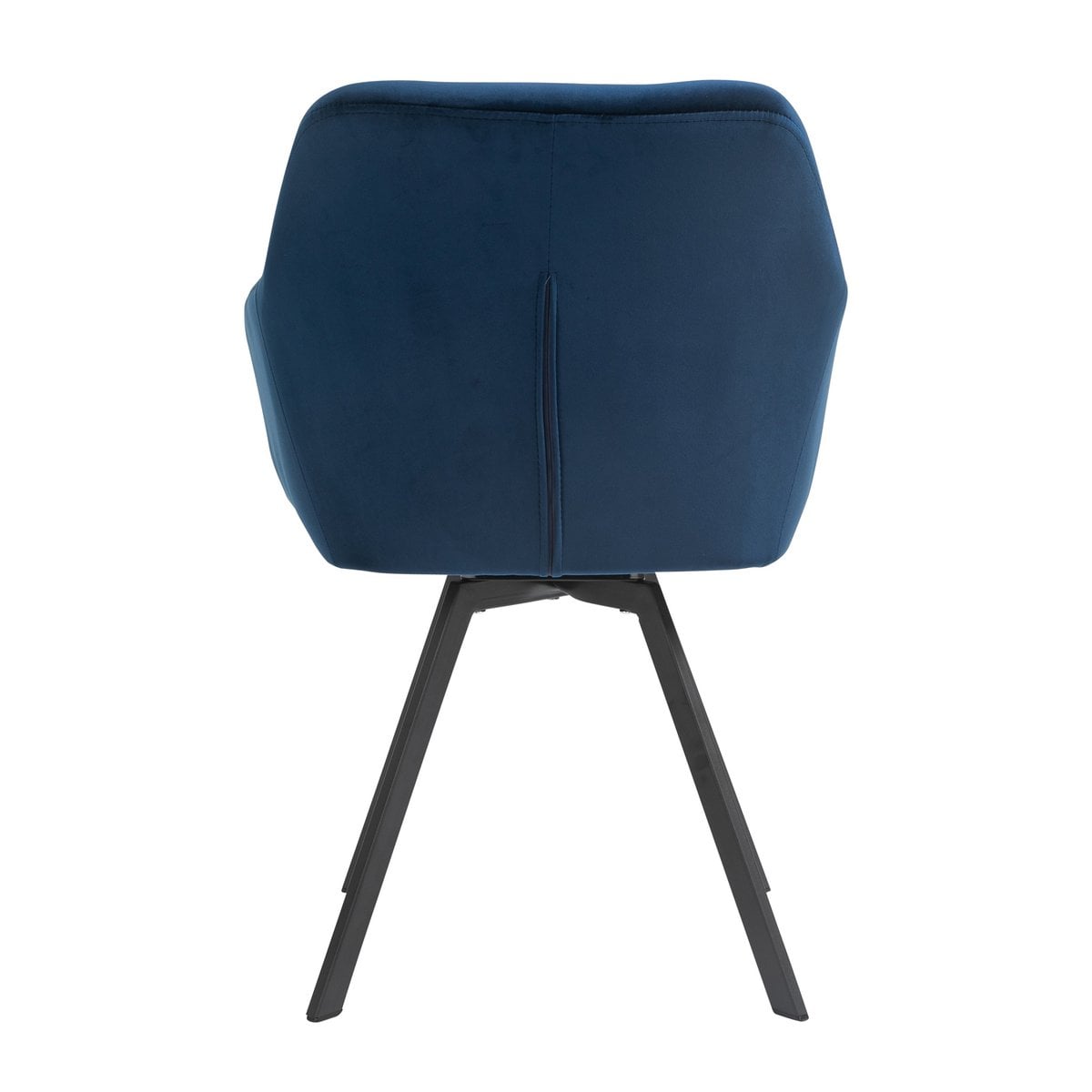 De vier bijpassende stoelen zorgen voor een luxe en comfortabel zitgevoel. De fluwelen bekleding, armleuningen en zachte vulling maken de stoelen zeer aangenaam in gebruik. De decoratieve knopen in de rugleuning geven de stoelen extra elegantie. Onder de zitting bevindt zich een 360° draaiplateau, wat zorgt voor optimale bewegingsvrijheid en extra comfort. Het stevige zwart gepoedercoate metalen onderstel maakt het ontwerp compleet.