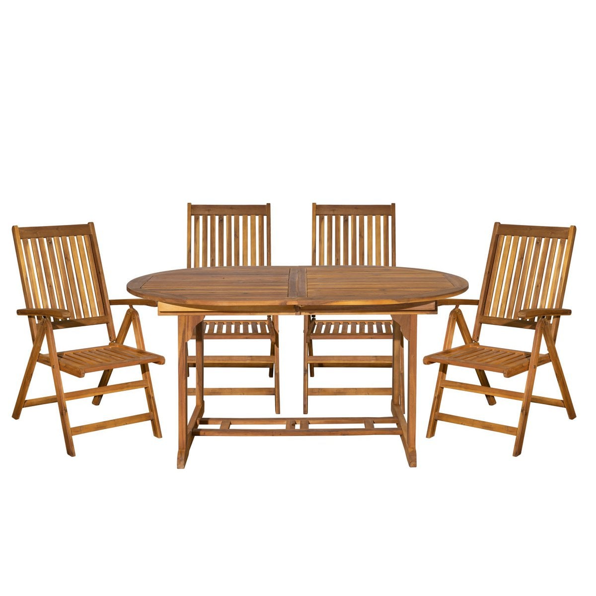 5-delige tuinset acaciahout met uitschuifbare tafel en verstelbare stoelen