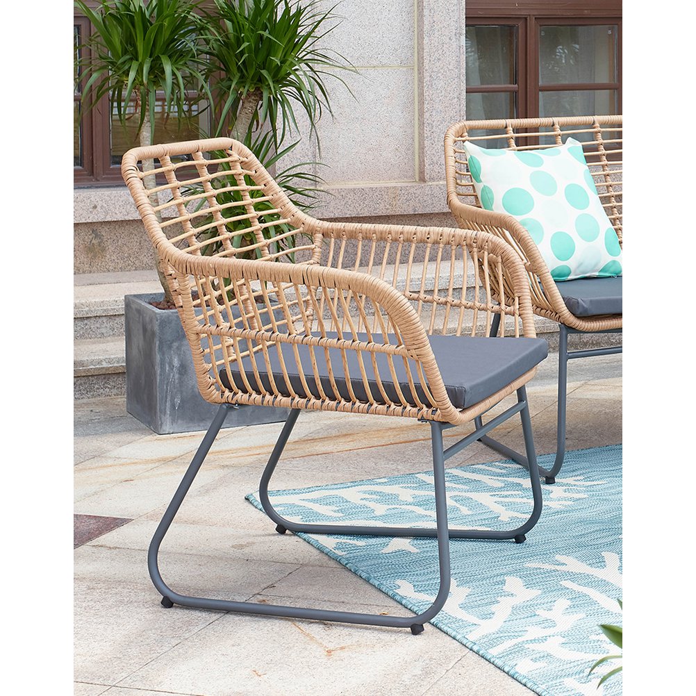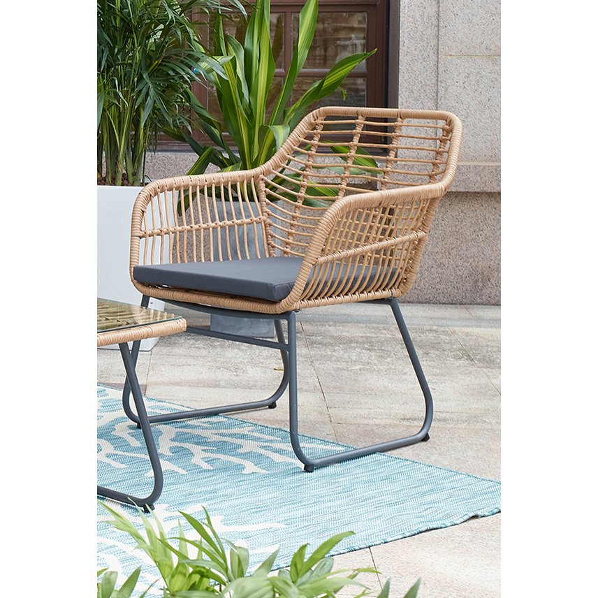 De tuinmeubelen zijn gemaakt van weerbestendig en UV-bestendig polyrotan. Dit materiaal heeft de uitstraling van traditioneel rotan, maar is sterker en beter geschikt voor buitengebruik. Dankzij de stevige constructie en duurzame materialen is deze tuinset ideaal voor lange zomerdagen en ontspannen momenten buiten. Ook binnenshuis, bijvoorbeeld in een serre, komt deze set mooi tot zijn recht.