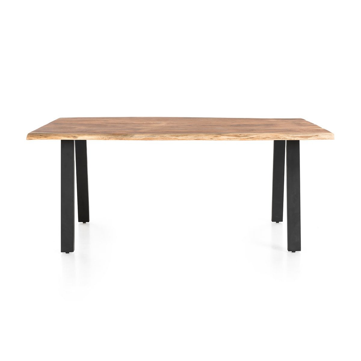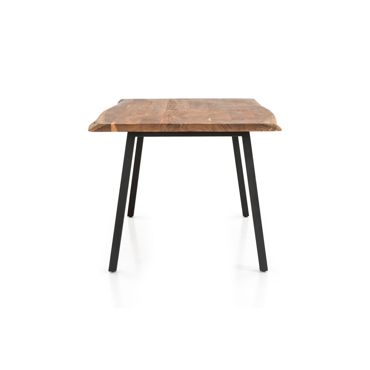 Massief Houten Eettafel – Acaciahout, Natuurlijke Rand, Zwart Metalen Frame, 200x100x76,5 cm