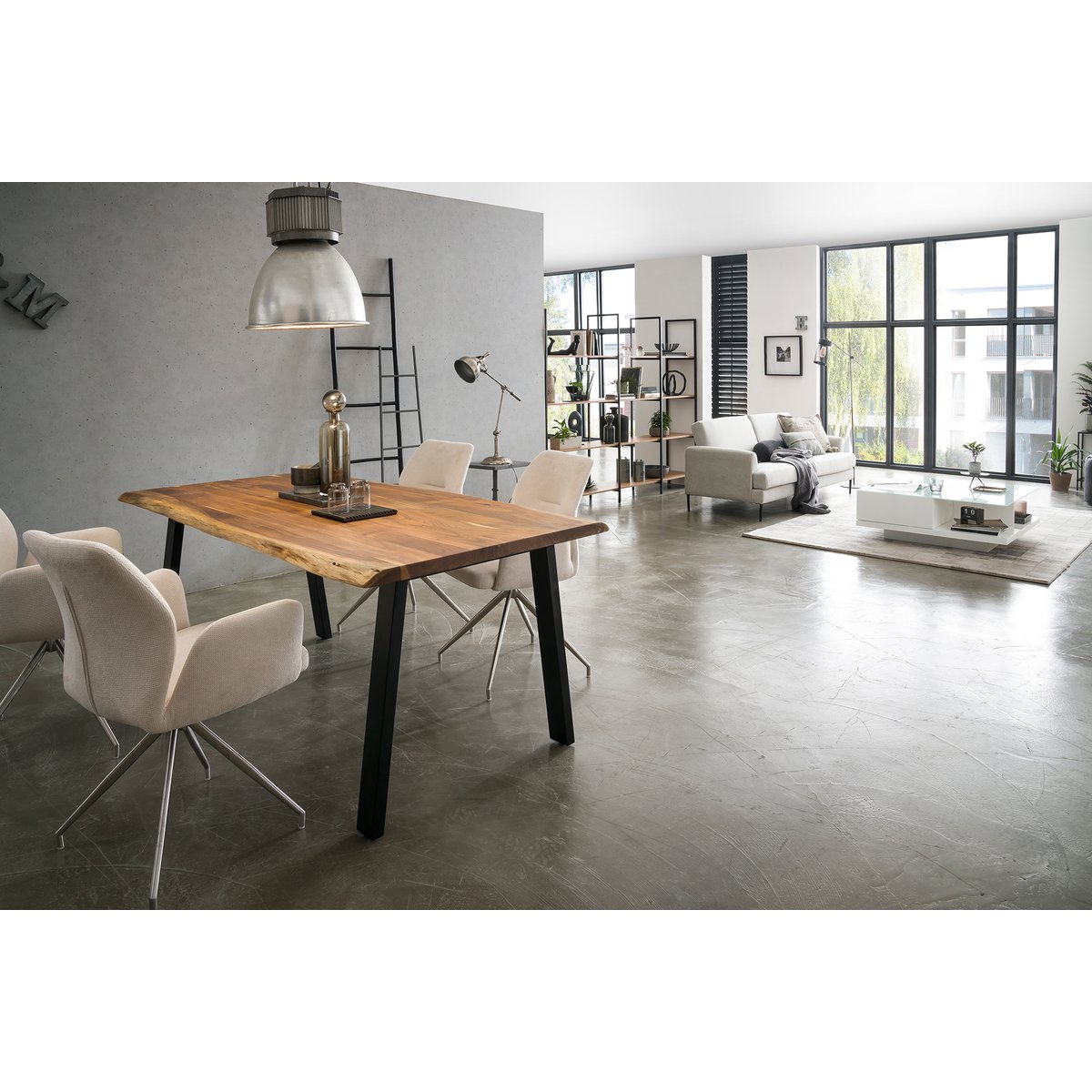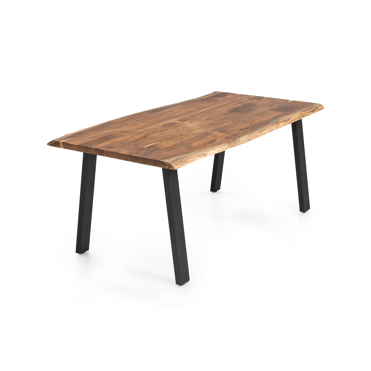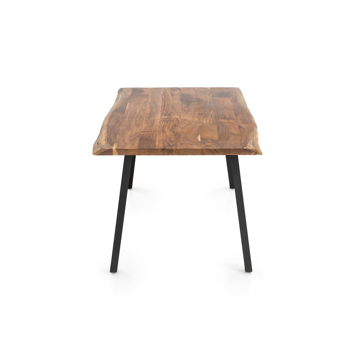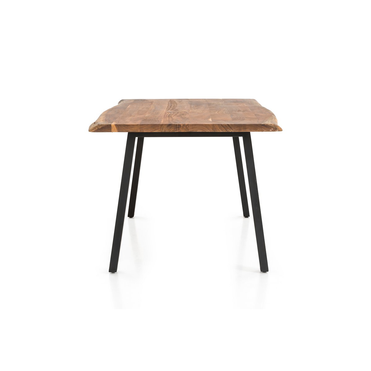 Massief houten meubelen gemaakt van acaciahout zijn een van de tijdloos mooie meubelstukken die nooit uit de mode raken. Het 35 mm dikke tafelblad met een natuurlijke vorm is gemaakt van acaciahout. Deze is tweemaal geolied en in de was gezet, waardoor het oppervlak ongevoelig en vochtafstotend is. Het stevige frame van gepoedercoat metaal in matzwart geeft de tafel een zeer goede stabiliteit en is de perfecte tegenhanger van het prachtige naturelkleurige tafelblad. Deze eettafel is meer dan alleen een plek om te eten. Haal een stukje natuur binnen in uw eigen vier muren. Let op: Omdat deze massief houten tafel een natuurproduct is, kunnen er knoestgaten of afwijkende kleurdecoraties voorkomen, maar deze duiden niet op fouten, maar onderstrepen eerder het individuele karakter van het echte hout. Ook de diepte kan variëren door de natuurlijke vorm. Al deze verschillen maken deze eetkamertafel werkelijk uniek. Massief hout tweemaal geolied en in de was gezet, oppervlak ongevoelig en vochtafstotend, randen met natuurlijke vorm, plaatdikte 35 mm, buisdikte 80×40 mm, afstand tussen de tafelpoten: ca. 210 cm, stalen frame, max. ruimte voor 8 tot 10 personen.