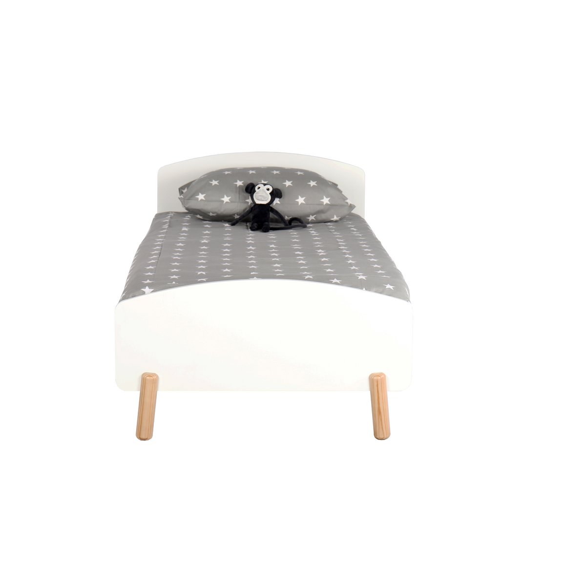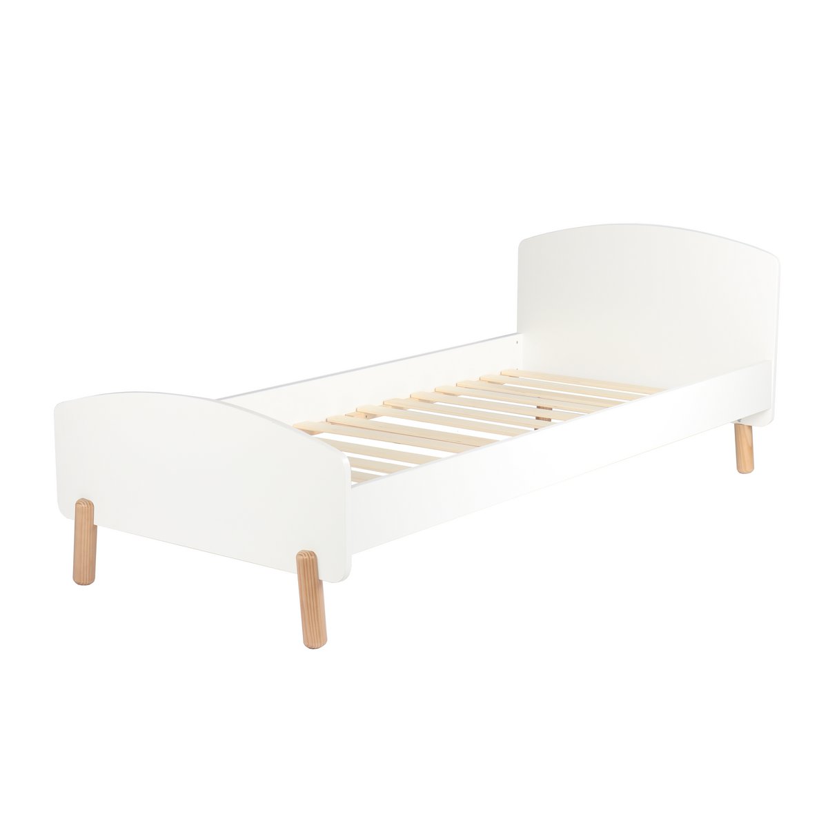 Dit Scandinavisch design bed overtuigt door zijn minimalistische eenvoud, waardoor het geschikt is voor vele interieurs. De lattenbodem voor een matrasmaat van 90×200 cm is bij de levering inbegrepen. Het bed is gemaakt van stevig grenenhout en wit geverfd MDF. Door de neutrale uitstraling is hij prima te gebruiken als kinderbed, maar kan hij later ook zonder problemen als tienerbed gebruikt worden.