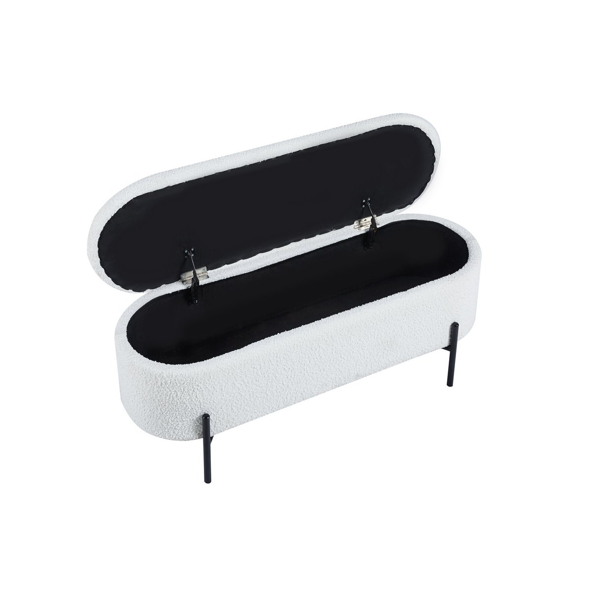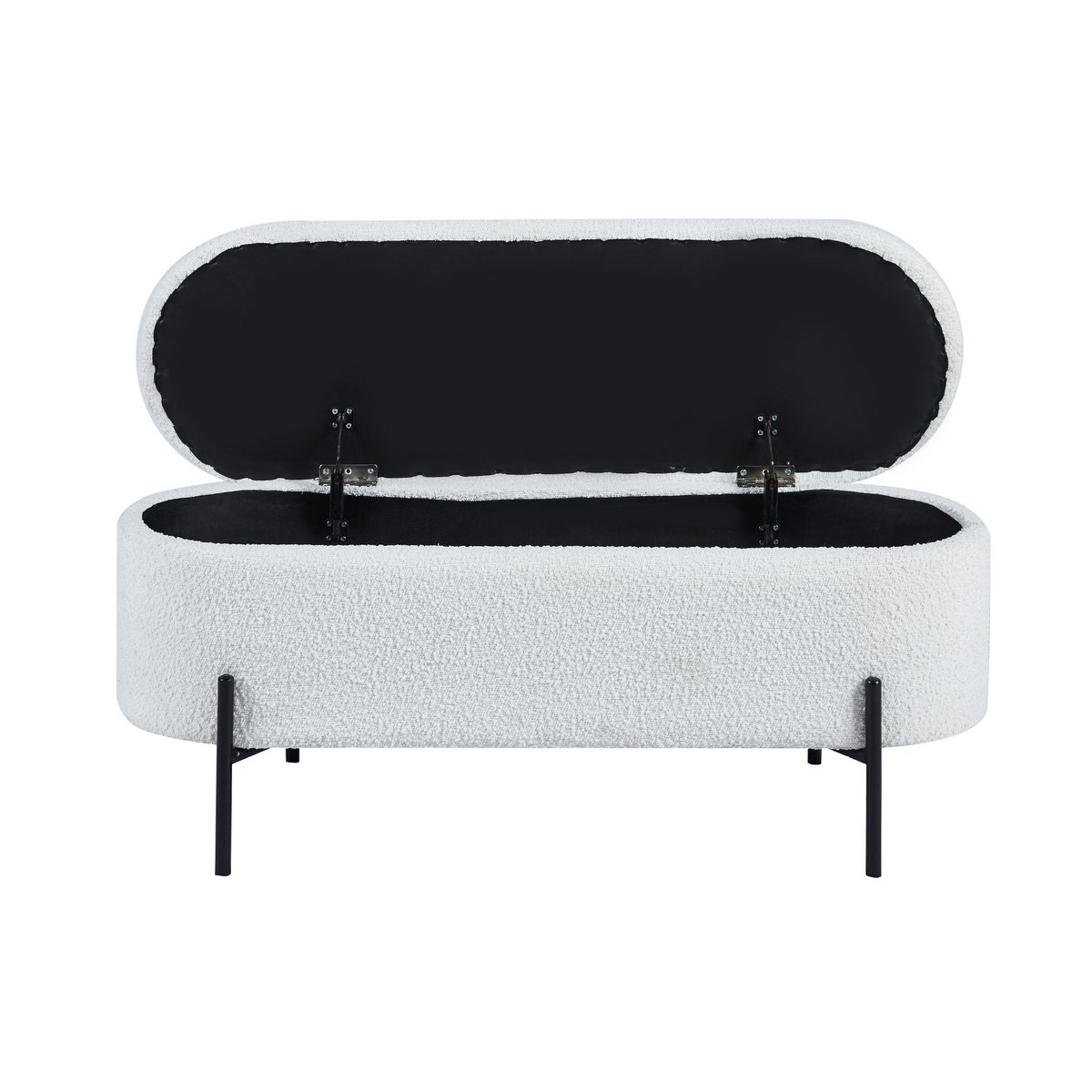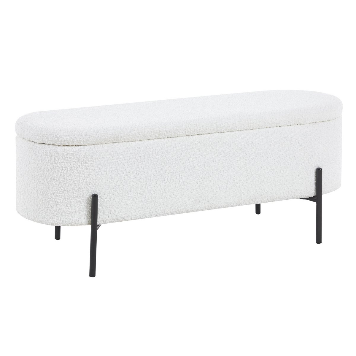 Als je op zoek bent naar Scandinavisch design met praktisch nut, dan is dit bedbankje met trendy bouclé hoes de juiste keuze. De poef overtuigt niet alleen door zijn geavanceerde design, maar biedt ook een slimme opbergruimtefunctie achter het klapdeksel. Of het nu gaat om dekens, dekbedovertrekken of kleding – je kunt het bedbankje gebruiken om op een stijlvolle manier orde te scheppen en rondslingerende spullen op te bergen. De boucléstof, die al lang zijn weg vindt naar onze woon- en slaapkamers, straalt warmte en geborgenheid uit. Bovendien weerspiegelt de stof met zijn wollige uitstraling vakkundig de essentie van de populaire Scandi-stijl. Het design frame met hoge voet is gemaakt van gepoedercoat zwart metaal en maakt de look helemaal af. traploos in de kamer verstelbaar, zithoogte: 44 cm, met vouwelement en opbergruimte binnenin, bekleding: 100% polyester, lichtsterkte hoes: 4, pillinghoes: 5, schuurcycli 100.000, draagvermogen: 120 kg, poten zwart metaal (staal) gepoedercoat.