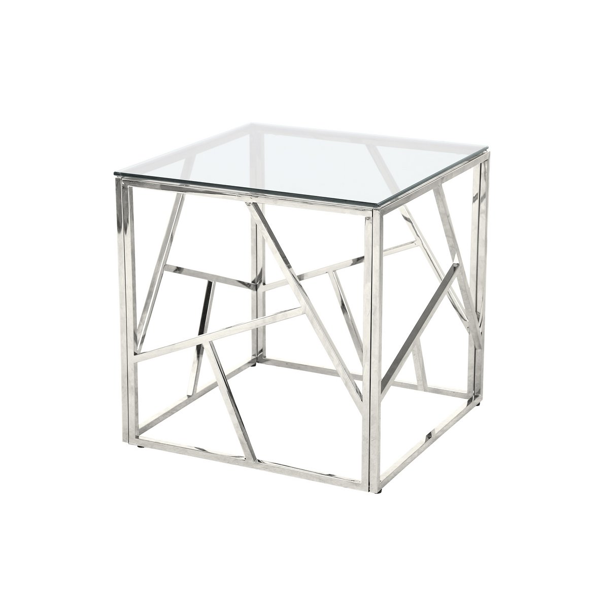 Deze bijzettafel is een opvallend designobject met een luxe uitstraling. Het abstracte frame van roestvrij staal geeft de tafel een sculpturaal karakter en maakt hem direct tot een blikvanger naast de bank of fauteuil. Het heldere glazen blad versterkt de luchtige en elegante uitstraling.