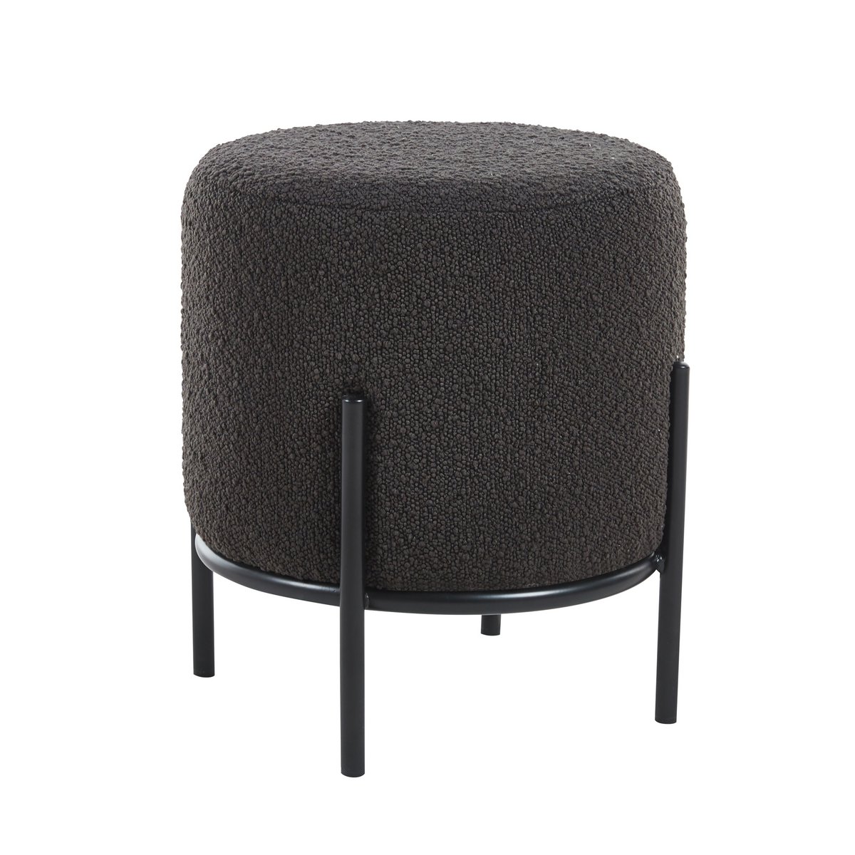 Deze compacte kruk in bouclé look is een stijlvolle en praktische toevoeging aan de woonkamer of slaapkamer. De zachte boucléstof geeft het meubel een warme en uitnodigende uitstraling die perfect past binnen de populaire Scandi-stijl. Het slanke zwarte metalen frame met hoge poten maakt het ontwerp luchtig en modern.