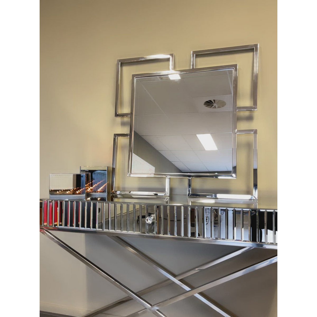 Deze Chrome Mirror is een prachtige aanvulling in huis. Deze verfijnde wandspiegel van gepolijst roestvrij staal is een kunst aan de muur. Maak je artistieke visie compleet met dit moderne decoratie. Lengte 80 cm Breedte 80 cm