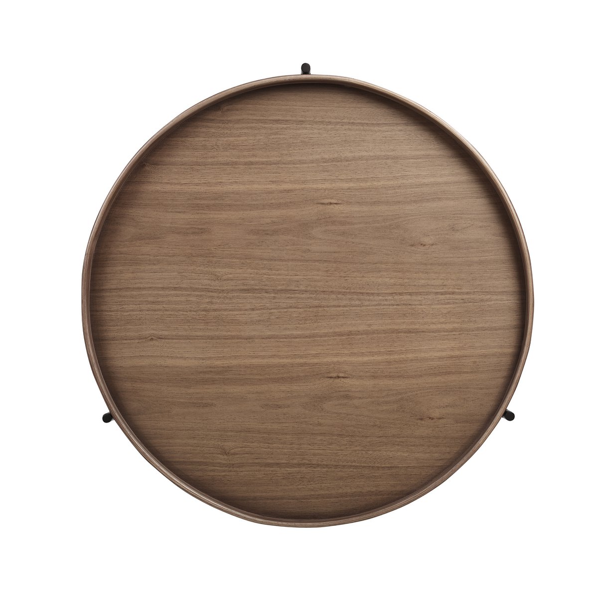 De salontafel met een diameter van 69 cm en twee planken is de ideale keuze voor iedereen die modern design wil combineren met praktische toepassingen. Met zijn doordachte design past hij moeiteloos in de meest uiteenlopende woonstijlen en overtuigt hij door zijn kwaliteit en esthetiek. De tafelbladen zijn gemaakt van vezelplaat met gemiddelde dichtheid (MDF) en zijn afgewerkt met aantrekkelijk walnootfineer, waardoor het oppervlak een warme, natuurlijke houtlook krijgt. Het lakwerk zorgt voor extra duurzaamheid en beschermt het materiaal tegen slijtage. Het frame is gemaakt van metaal en voorzien van een matte poedercoating, wat de tafel niet alleen een elegante uitstraling geeft, maar hem ook bestand maakt tegen krassen en gebruikssporen. Met zijn twee planken biedt de salontafel voldoende ruimte om boeken, tijdschriften, afstandsbedieningen of decoraties stijlvol en binnen handbereik te plaatsen. Dankzij zijn eenvoudige maar elegante uitstraling past deze salontafel in verschillende woonomgevingen, of deze nu minimalistisch, Scandinavisch of industrieel zijn. De materiaalmix van houtfineer en metaal geeft het een modern en tegelijkertijd natuurlijk karakter. Met een diameter van 69 cm is hij ruim genoeg voor dagelijks gebruik, maar blijft hij toch compact en flexibel. Tafelbladen: vezelplaat van gemiddelde dichtheid (MDF) met walnootfineer, geverfd, frame: metaal, mat gepoedercoat