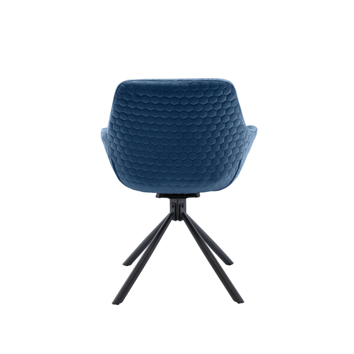 Deze trendy fauteuil combineert luxe details met praktisch gebruiksgemak. De stoel is bekleed met een zachte stof in fluweellook en valt op door de decoratieve kruisstiksels aan de binnenzijde en het honingraatpatroon aan de buitenzijde. Samen met de comfortabele armleuningen en de uitnodigende zitschaal zorgt dit voor een stijlvolle en prettige zitervaring.