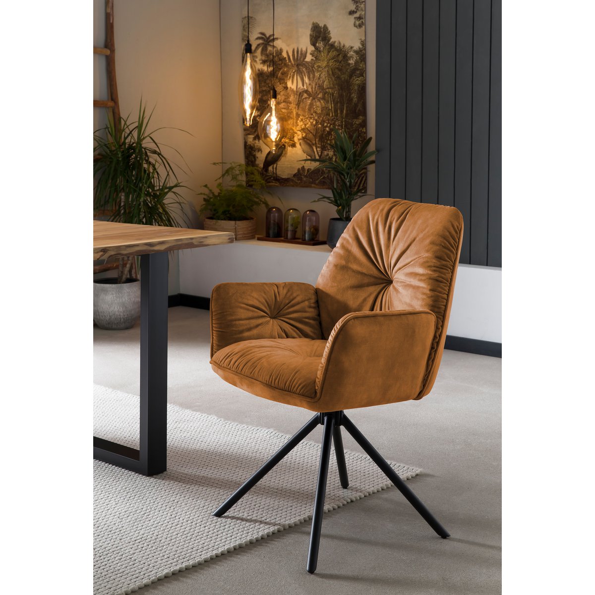 Of je hem nu gebruikt in de woonkamer, een stijlvolle werkruimte of als comfortabele vergaderstoel, deze fauteuil voegt direct karakter toe aan het interieur. De 360 graden draaifunctie maakt de stoel extra praktisch in gebruik. De decoratieve knoopstiksels op de zitting, rugleuning en armleuningen versterken het luxe karakter en geven de fauteuil een exclusieve uitstraling.