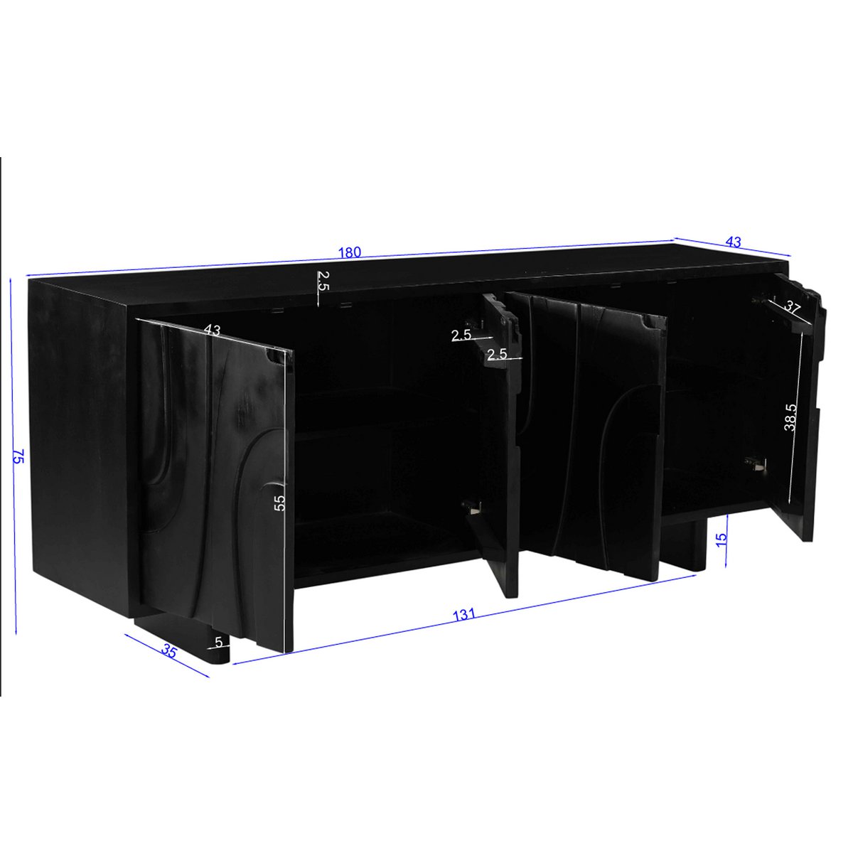 Een dressoir is veel meer dan alleen een functioneel meubelstuk – het is een verklaring voor stijl en kwaliteit. Met zijn tijdloze ontwerp en natuurlijke materialen biedt dit dressoir gemaakt van massief mango -hout een perfecte combinatie van functionaliteit en esthetiek. Het dressoir meet 180 cm in de breedte en wordt gebruikt door zijn genereuze ruimte voor de ideale toevoeging aan wonen, dineren of studie. Het is uitgerust met vier deuren die harmonieus in het algemene beeld passen vanwege hun eenvoudige elegantie. Het diepe zwart van het mango -hout geeft de kamer een elegant charisma en creëert een stijlvolle sfeer. Achter de deuren zijn er vier ruime compartimenten die veel opslagruimte bieden voor gerechten, boeken, decoraties of andere alledaagse objecten. De duidelijke divisie zorgt ervoor dat alles zijn plaats vindt en gemakkelijk toegankelijk is. Een ander hoogtepunt zijn de stabiele houten veroveraars, die het dressoir een krachtige en tegelijkertijd harmonieus uiterlijk geven. Dit dressoir gemaakt van massief mango -hout combineert materialen van hoge kwaliteit, praktische functionaliteit en tijdloos ontwerp. Met zijn genereuze grootte, de slimme oplossingen voor opslagruimte en het warme charisma, is het de perfecte keuze voor iedereen die stijl en kwaliteit waardeert. Of het nu gaat om een oogstadder in de woonkamer of praktisch meubelstuk in de eetkamer -dit dressoir is een echte allemaal -rounder. Hoogte van de voeten: ongeveer 15 cm, hoogte van het lichaam: ongeveer 60 cm, frame -breedte corpus: ongeveer 2,5 cm, diepte van de voeten: ca. van de deuren: 4x ca. 43×55 cm, 4 compartimenten binnenin