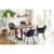 Massief houten meubelen gemaakt van acaciahout zijn een van de tijdloos mooie meubelstukken die nooit uit de mode raken. Deze 5-delige eetgroep maakt ook indruk met de eettafel met een 35 mm dik tafelblad van massief acaciahout. Het ruwe balkenoppervlak is een absolute blikvanger. Bijzonder hoogtepunt: het U-frame van zwart gelakt metaal geeft de tafel een zeer goede stabiliteit en is de perfecte tegenhanger van het tafelblad in een warme natuurtint. Deze eettafel is meer dan alleen een plek om te eten. Breng een stukje natuur binnen uw eigen vier muren. De stoelen zijn bekleed met een hoogwaardige stoffen bekleding in een matte fluwelen look. De fauteuilvormige zitschaal is aan de binnenkant voorzien van uitgebreide diamantquilts. De ergonomisch afgeronde hoeken en randen, de armleuningen en de aangename rugleuninghoogte zorgen voor zitcomfort van topklasse. Let op: Omdat deze massief houten tafel een natuurproduct is, kunnen er knoesten of afwijkende kleurdecoraties voorkomen, maar deze duiden niet op fouten, maar onderstrepen eerder het individuele karakter van het echte hout. Afmetingen van de tafel: B160xD90xH75 cm, afmetingen van de stoel: B61xD68xH82 cm, zithoogte ca. 46 cm, zitbreedte ca. 42 cm, max. belasting 120 KG, hoogte van de armleuningen ca cm, hoogte van de rugleuning ca. 33,5 cm, lichtweerstandshoes = 4, pillinghoes = 5, slijtvastheid = 60.000 schuurcycli, plaatdikte: 35 mm, afstand tussen de poten: ca. 103 cm