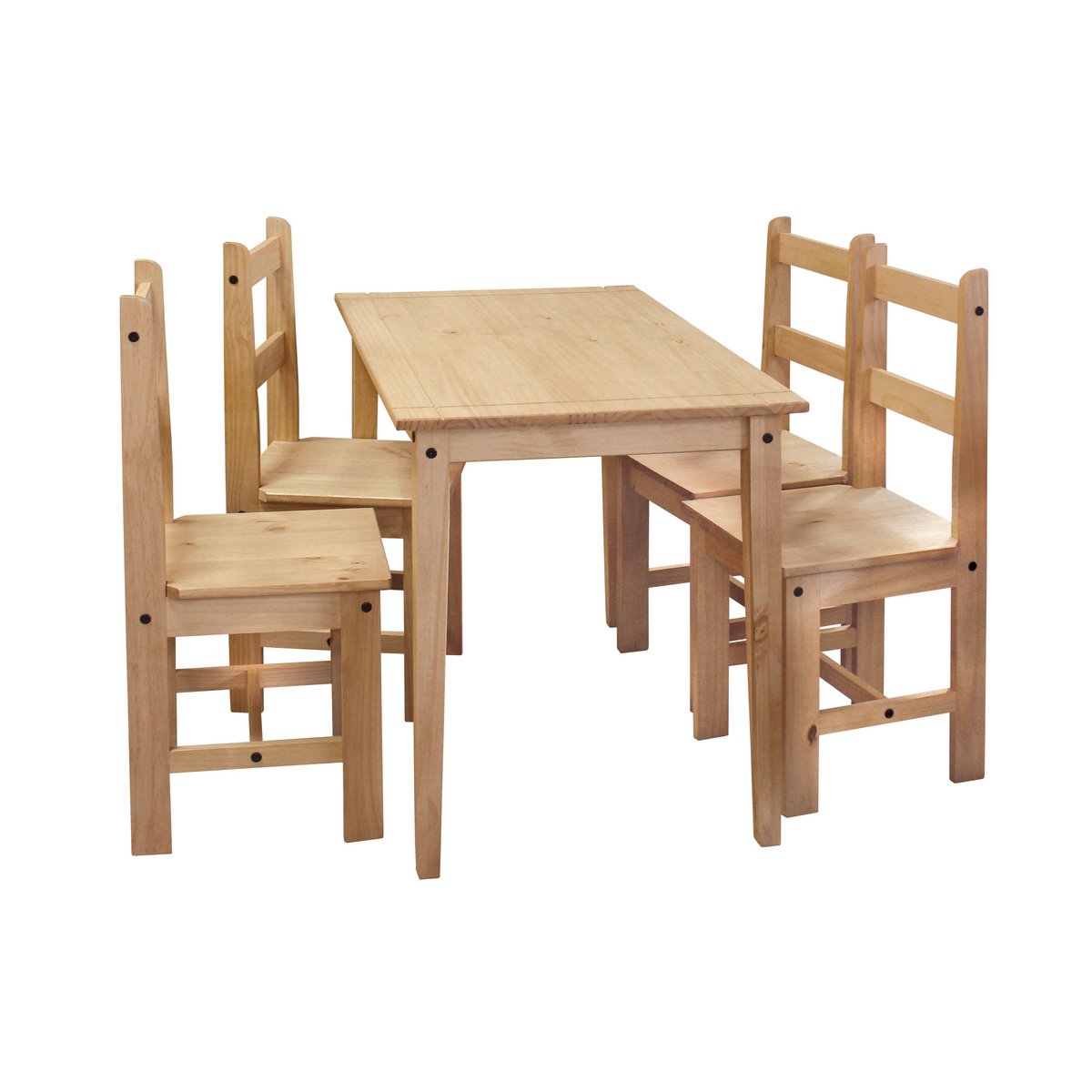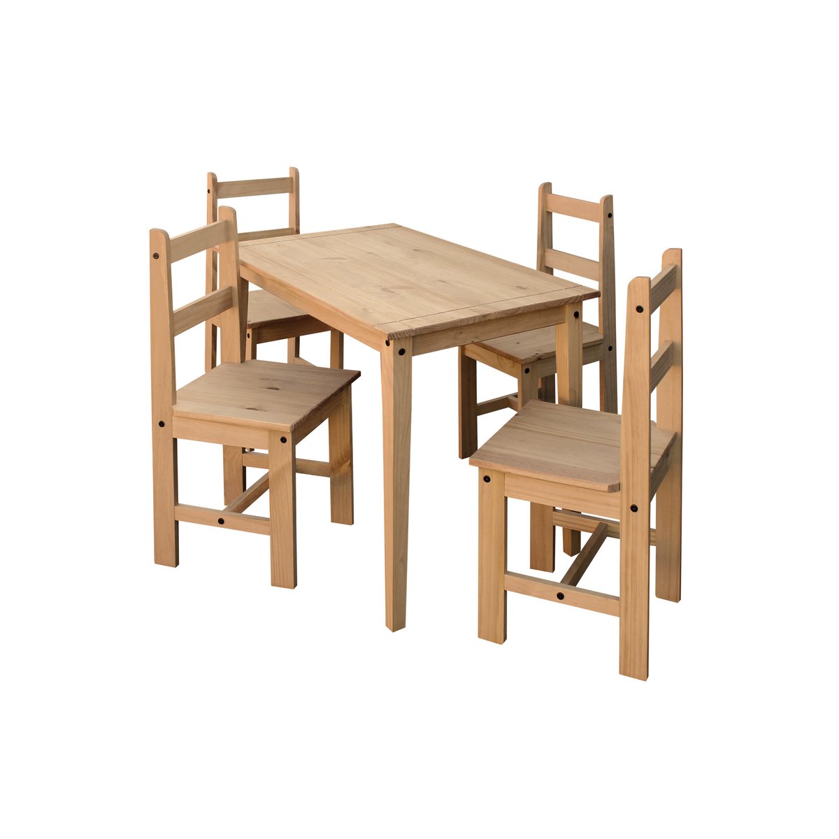 Geef uw eetgedeelte een vleugje natuurlijke elegantie met onze eetgroep gemaakt van massief dennen. Bestaande uit een tafel en vier stoelen, is deze eetgroep niet alleen functioneel, maar ook een echt hoogtepunt voor uw huis. De eettafel, gemaakt van high -qualy dennenhout, biedt voldoende ruimte voor sociale maaltijden met familie en vrienden. Het natuurlijke, gewaxte oppervlak benadrukt de warme korrel van het hout en geeft de tafel een rustieke schoonheid. De vier bijpassende stoelen bieden niet alleen comfortabel zitcomfort, maar hebben ook stijlvolle accenten in hun eetkamer gezet. Gemaakt van hetzelfde hoogwaardige dennenhout als de tafel, passen ze perfect bij de natuurlijke esthetiek. Deze eetgroep gemaakt van massief dennenhout is niet alleen een functioneel meubel, maar ook een echt statement voor kwaliteit en stijl. Het combineert harmonieus in verschillende stijlen van meubels en is zeker het centrum van haar eetgedeelte. Afmetingen van de tabel: 108x65x76 cm, hoogte tot de onderrand van 67 cm, afmetingen van de stoelen 39x42x93 cm, stoelbreedte stoel 38,5 cm, stoelhoogte stoel 45 cm, zitdiepte stoel 40,6 cm, maximale laadcapaciteitsstoel 100 kg
