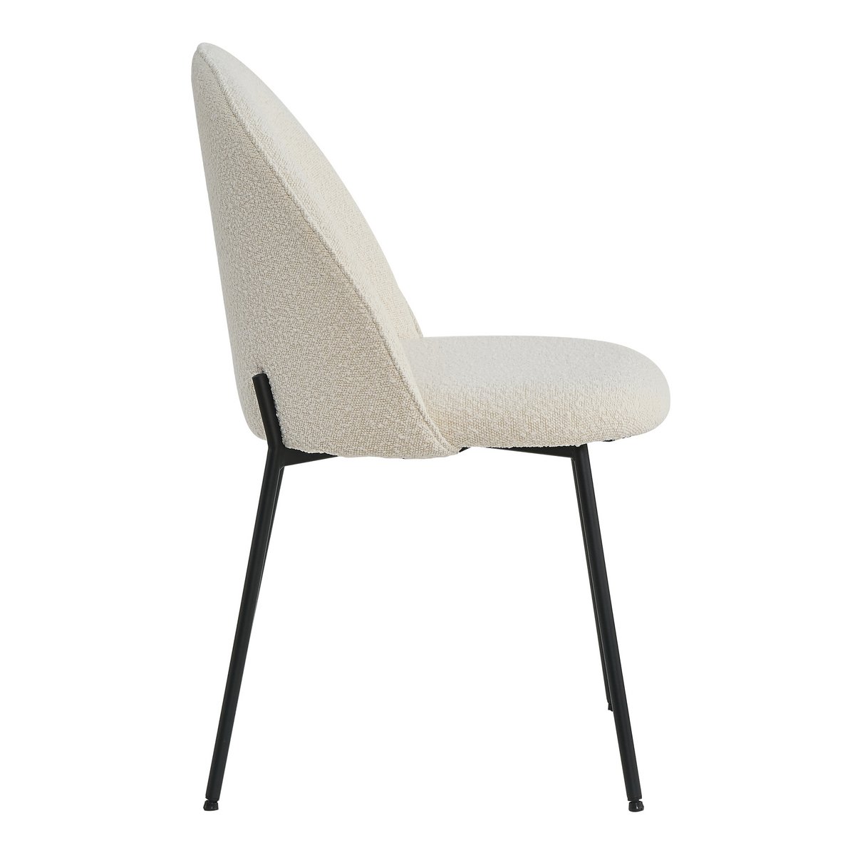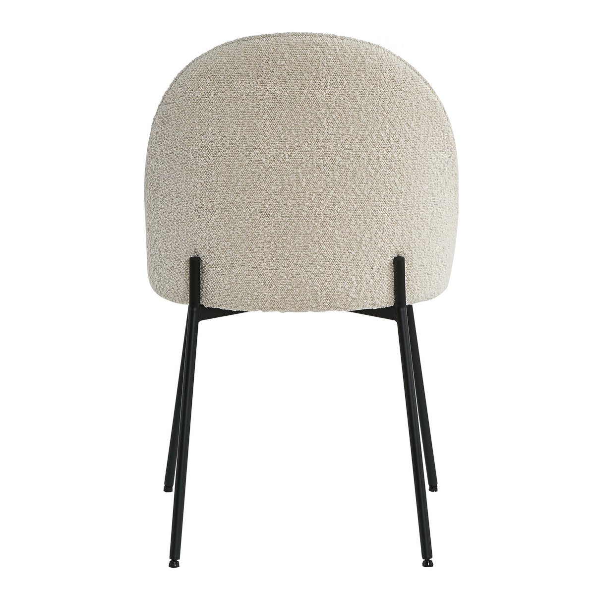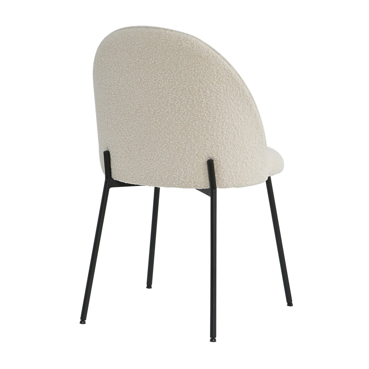 Deze eetkamerstoel in Scandinavische stijl combineert eenvoud, comfort en een moderne uitstraling in één elegant ontwerp. De zachte boucléstof in beige geeft de stoel een warme en uitnodigende look, terwijl de zwarte metalen poten zorgen voor een strak en eigentijds contrast. De afgeronde rugleuning en de doorlopende hoge achterpoten geven de stoel een bijzonder designaccent dat perfect past binnen een modern en minimalistisch interieur.