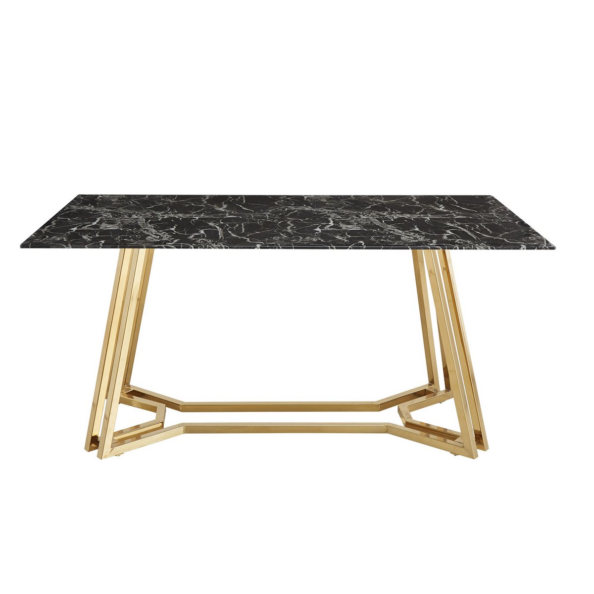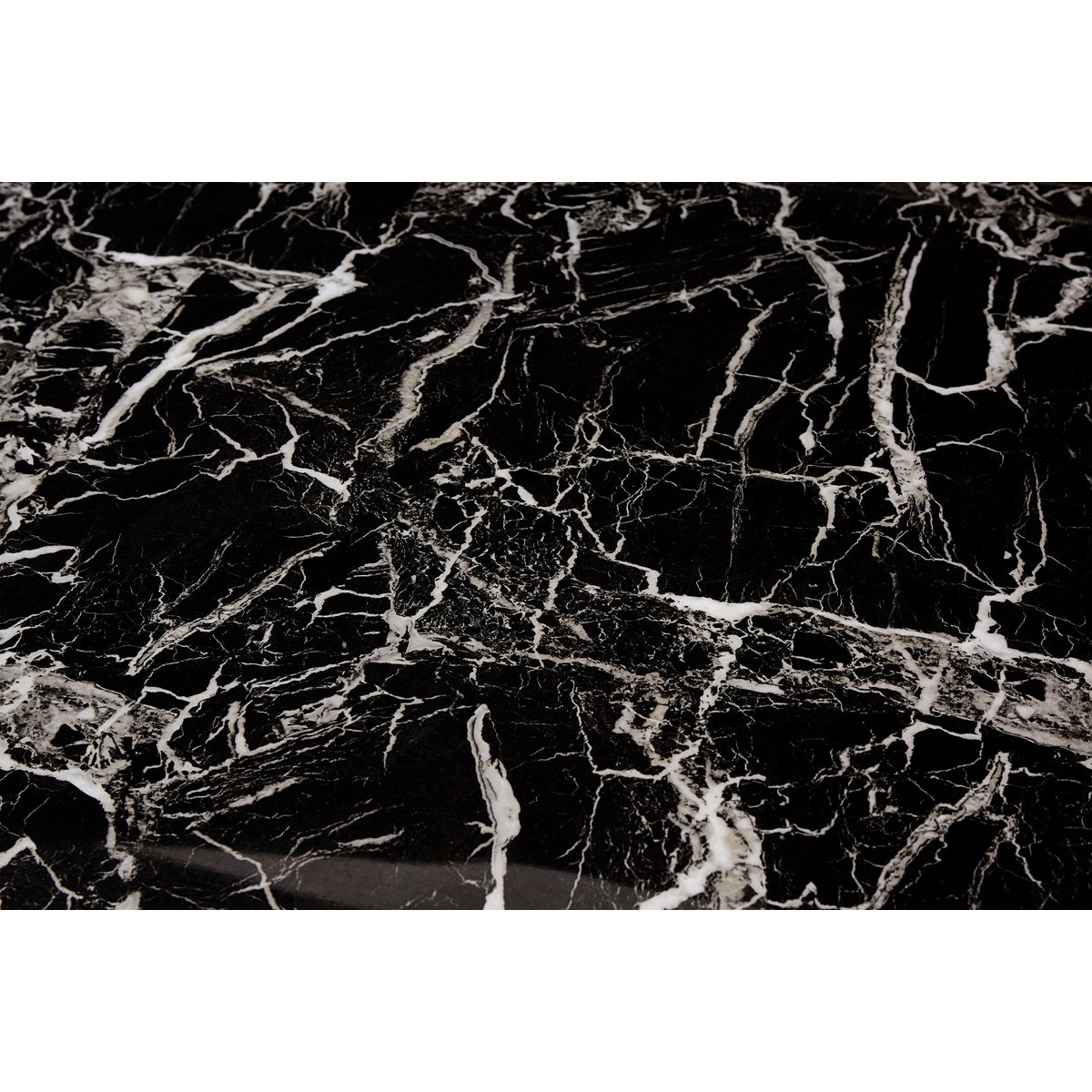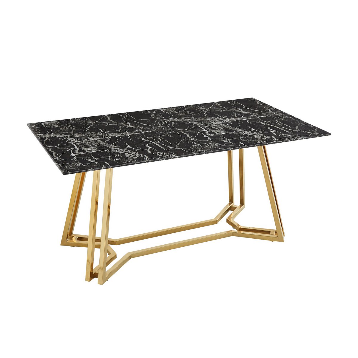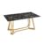 Het nieuwe pronkstuk in je eethoek is deze eettafel. Het zwarte marmerlook tafelblad is gemaakt van glas. Het goudkleurige frame ziet er niet alleen stijlvol uit, het geeft de tafel ook een zeer goede stabiliteit en past perfect bij het zwarte glazen blad. Meubels met een marmerlook zijn erg trendy en passen in vrijwel ieder interieur. Aan deze eettafel vindt meer plaats dan alleen de dagelijkse maaltijden. Hier kunt u uitgebreide gesprekken voeren met vrienden, familie of zakenpartners. Tafelblad 10 mm gehard glas (veiligheidsglas), verchroomd frame, max. draagvermogen: middengedeelte 120 kg, zijkanten 30 kg, hoogte onderkant tafel ca. 74 cm.