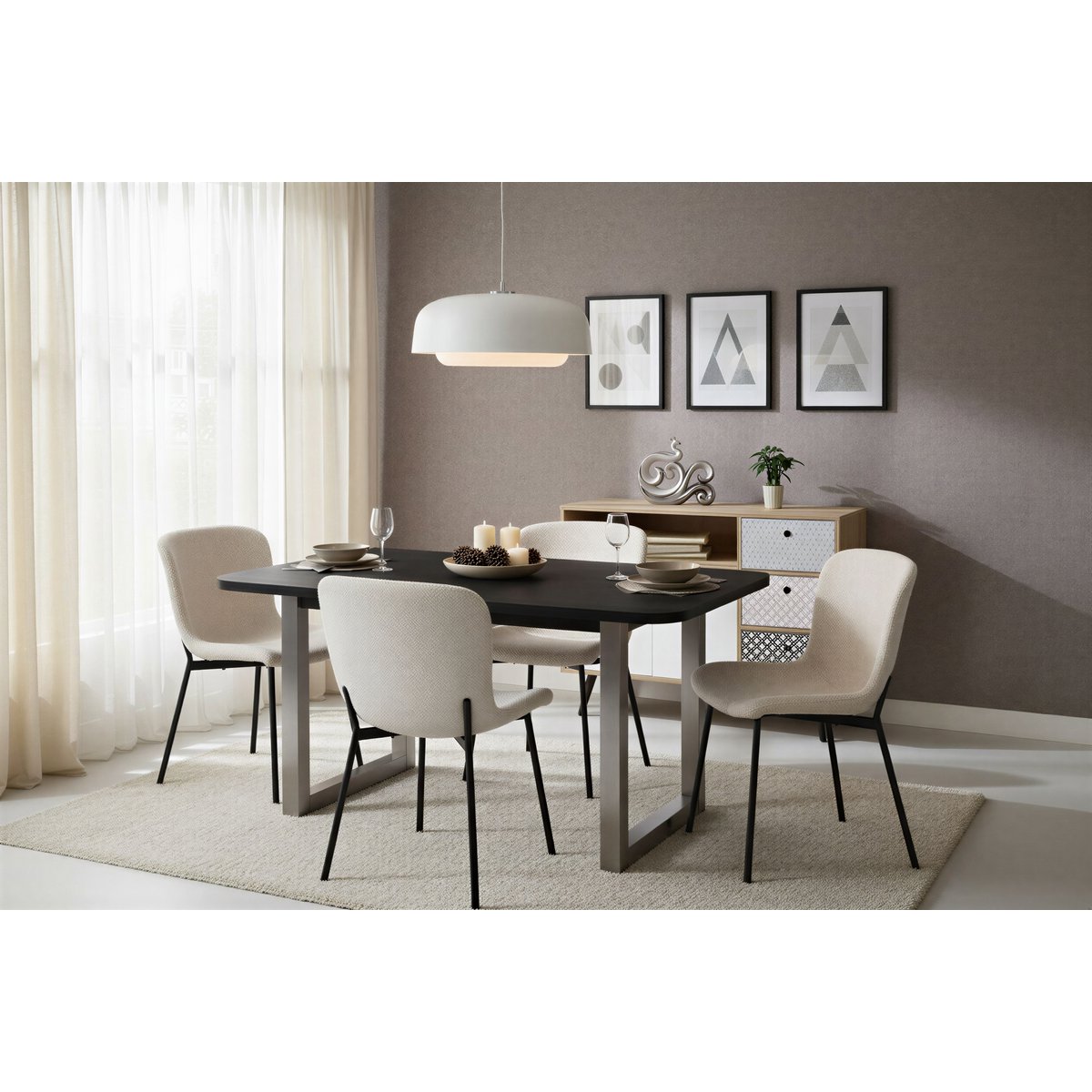 Deze eettafel combineert opvallend design met natuurlijke uitstraling. Het royale tafelblad van massief mangohout overtuigt in elegant zwart en heeft een karakteristieke nerf die elke tafel een individueel tintje geeft. Met een plaatdikte van 30 mm biedt hij een solide, hoogwaardig gevoel en zorgt hij voor stabiliteit in het dagelijks leven. De afgeronde hoeken geven de tafel een harmonieuze, moderne vorm en vormen een subtiel contrast met het heldere, rechtlijnige onderstel. Het U-vormige sledeonderstel van staal met antieke afwerking rondt het ontwerp stijlvol af – robuust, elegant en met een vleugje industriële charme. Met zijn afmeting van 180 x 90 cm biedt de tafel voldoende ruimte voor familie en gasten. Of het nu gaat om een centraal ontmoetingspunt in de eetkamer of als stijlvol statement-stuk op zolder – deze tafel overtuigt door de geslaagde combinatie van natuurlijk materiaal, modern design en hoogwaardig vakmanschap. Afmetingen framebuizen, buizen 6×6 cm, plaatdikte: 3 cm, geverfd, tafel bestaande uit frame 07112-40 + bord 14746-11