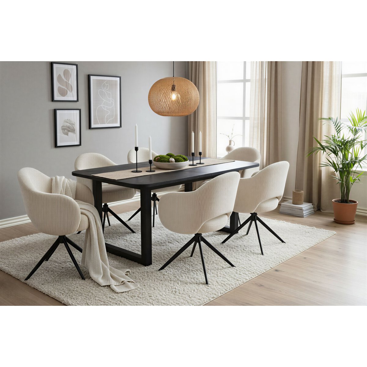 Deze eettafel combineert opvallend design met natuurlijke uitstraling. Het royale tafelblad van massief mangohout overtuigt in elegant zwart en heeft een karakteristieke nerf die elke tafel een individueel tintje geeft. Met een plaatdikte van 30 mm biedt hij een solide, hoogwaardig gevoel en zorgt hij voor stabiliteit in het dagelijks leven. De afgeronde hoeken geven de tafel een harmonieuze, moderne vorm en vormen een subtiel contrast met het heldere, rechtlijnige onderstel. Het U-vormige sledeonderstel van staal met antieke afwerking rondt het ontwerp stijlvol af – robuust, elegant en met een vleugje industriële charme. Met zijn afmeting van 180 x 90 cm biedt de tafel voldoende ruimte voor familie en gasten. Of het nu gaat om een centraal ontmoetingspunt in de eetkamer of als stijlvol statement-stuk op zolder – deze tafel overtuigt door de geslaagde combinatie van natuurlijk materiaal, modern design en hoogwaardig vakmanschap. Afmetingen framebuizen, buizen 6×6 cm, plaatdikte: 3 cm, geverfd, tafel bestaande uit frame 07112-11 + bord 14746-11