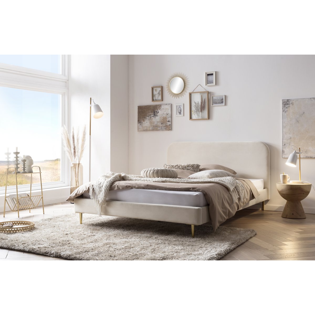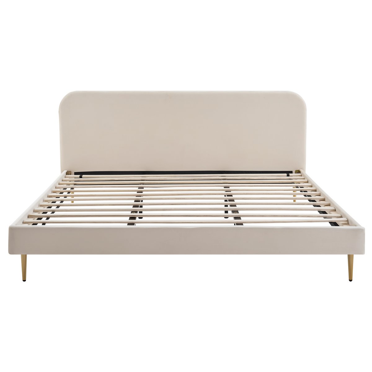 Dit gestoffeerde bed met hoogwaardige fluwelen bekleding brengt elegante charme in het slaapgedeelte. Het eenvoudige design en de eenvoudige lijnen maken het bed tot de ideale aanvulling op vele woonomgevingen en inrichtingsstijlen. De goudkleurige chromen poten creëren een modern karakter in contrast met het zachte fluweel van het frame. Een eenvoudige lattenbodem is al bij de levering inbegrepen. De bodemvrijheid van 15 cm onder het bed kan indien nodig optimaal worden benut als opbergruimte; er is ruimte voor bijvoorbeeld platte dozen met beddengoed of seizoenskleding. Met de drie beschikbare kleur- en maatvarianten vindt iedereen zeker zijn favoriet die bij zijn behoeften past. Breedte van het hoofdbord: ca. 191,5 cm, hoogte van het hoofdbord ca. 91 cm, hoogte van de poten: ca. 15 cm, hoogte van vloer tot bovenkant bedframe: ca. 29,5 cm 4 cm, inclusief eenvoudige lattenbodem, poten van goudgeverfd staal, instaphoogte 30 cm, afstand vloer tot zijdeel 15 cm, met middenstang.
