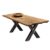 Het zwarte metalen X-vormige onderstel vormt een krachtig contrast met het warme hout en geeft de tafel een stoere industriële uitstraling. Dankzij het royale formaat is deze tafel ideaal als centraal ontmoetingspunt voor diners, gesprekken en gezellige momenten met familie en vrienden.