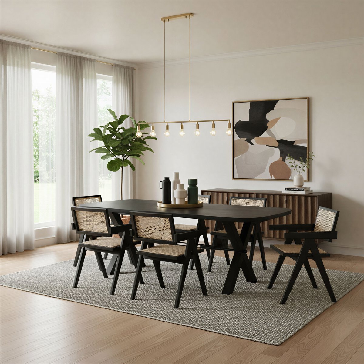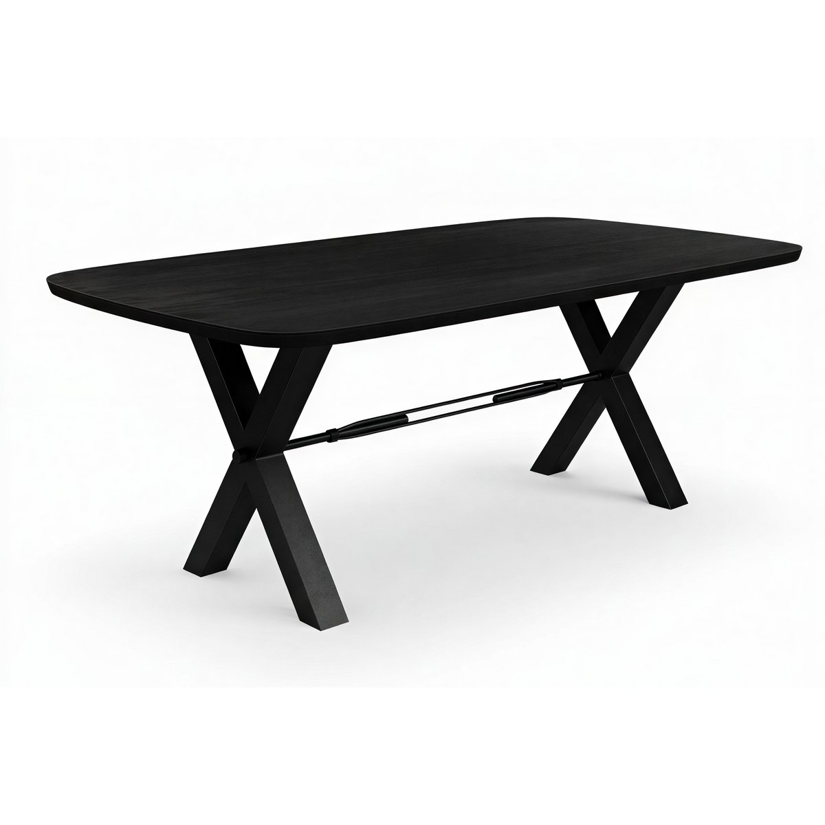 De afgeronde hoeken zorgen voor een zachtere, moderne belijning en maken het geheel harmonieus en eigentijds. Het robuuste X-frame van staal met dwarsbalk in zwarte afwerking geeft de tafel een stoer karakter en zorgt tegelijk voor uitstekende stabiliteit. Met zijn royale formaat biedt deze tafel volop ruimte voor gezellige diners, lange gesprekken en dagelijkse momenten met familie en vrienden.
