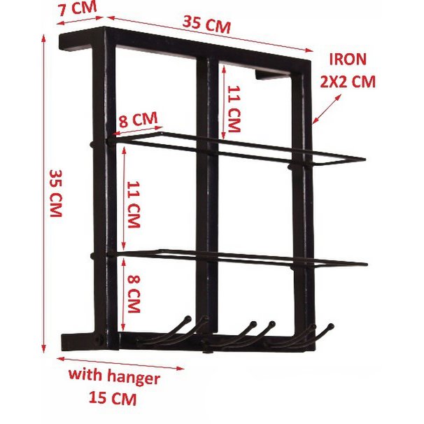 – Onderdeel 2: wandrek voor 3 glazen, 35 x 15 x 35 cm