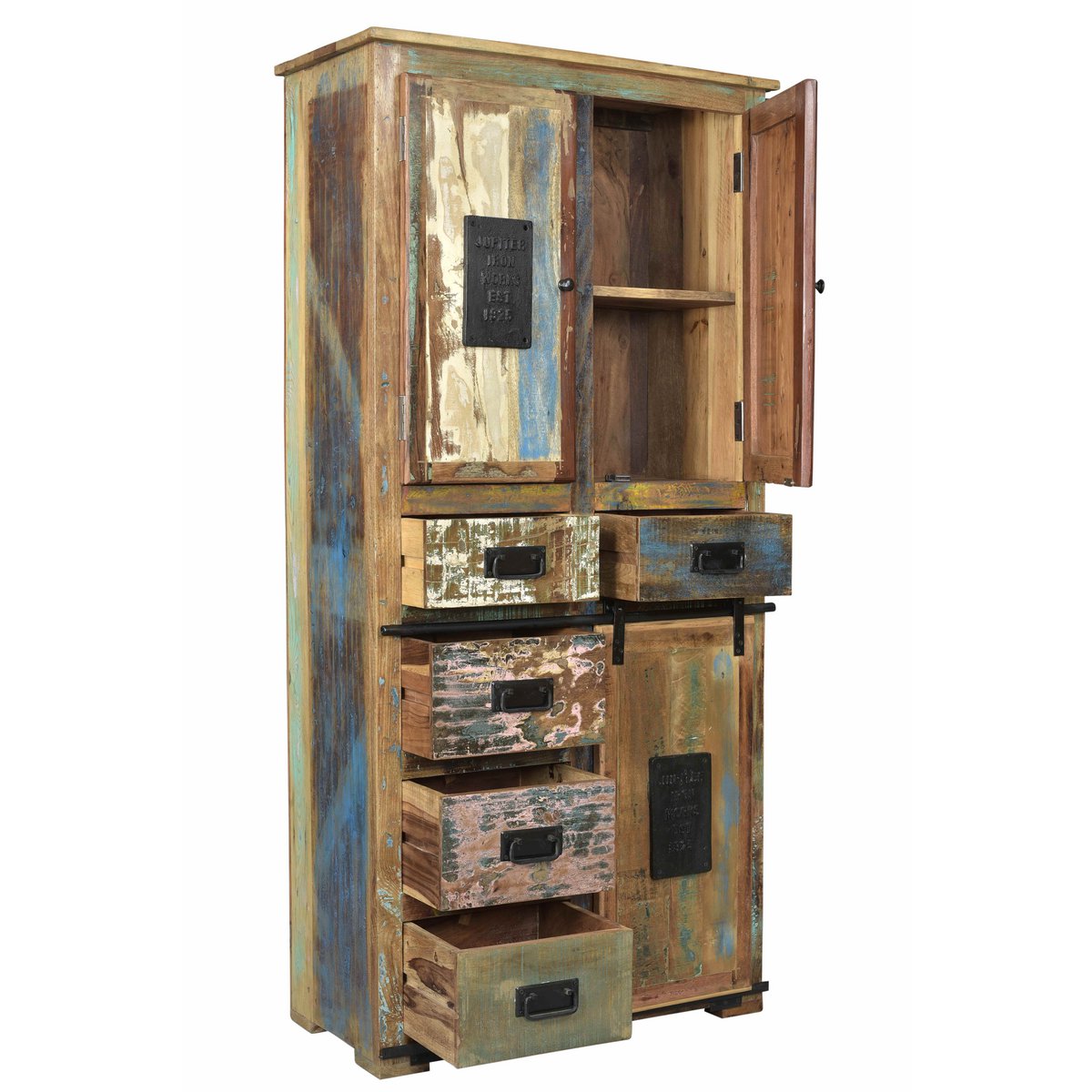 Het gerecyclede afvalhout voor dit meubilair halen we uit oude vissersboten, gesloopte huizen, oude deuren en poorten. Misschien ken je het geluksgevoel als je iets unieks hebt gevonden. Dit kan je nog een keer overkomen, want elk stuk wordt gegarandeerd maar één keer op de wereld gevonden. Vakmanschap, aandacht voor detail, Franstalige charme – gewoon het tegenovergestelde van uniformiteit, standaard en verveling. Vooral als tegenhanger van de bestaande inrichting kunt u eenvoudig een compleet nieuwe look in uw huis creëren. Achter elke deur zit 1 stevige plank, vakmaat 34,5x36x34,5 cm.