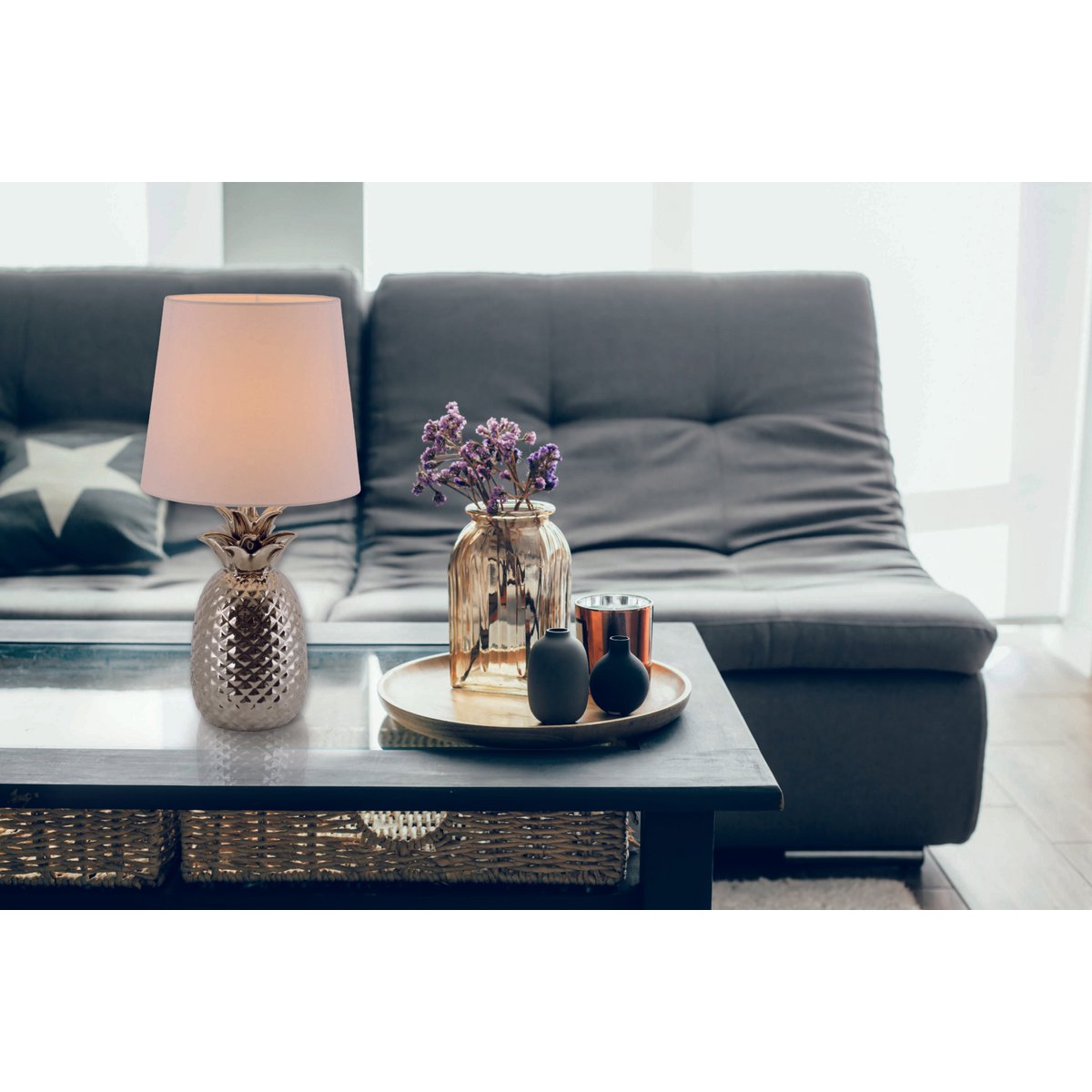 Klassiek met een scheutje exotisme, dit is waarschijnlijk zeer goed beschreven. Eigenlijk thuis in de klassieke faciliteit, deze speciale lamp met zijn voet in de vorm van een “ananas”. Door het chroom -gekleurde glazuur van de voet lijken het er nog nobeler uit en brengt ze zeker wat glans in je kamers. De witte paraplu laat de lamp er licht en fris uitzien.
