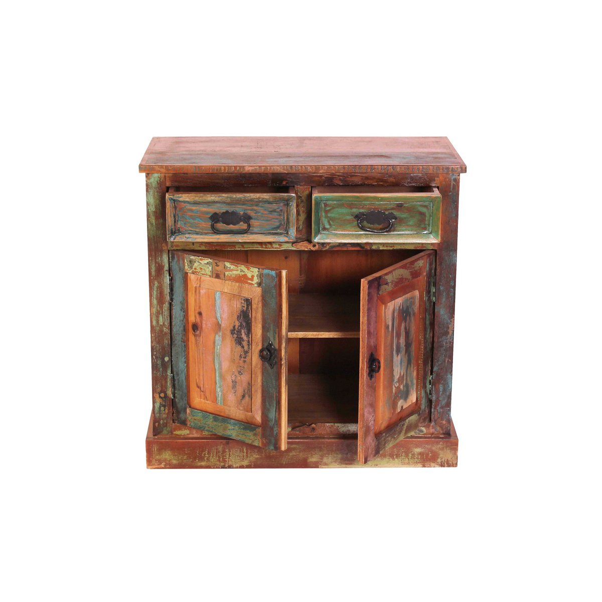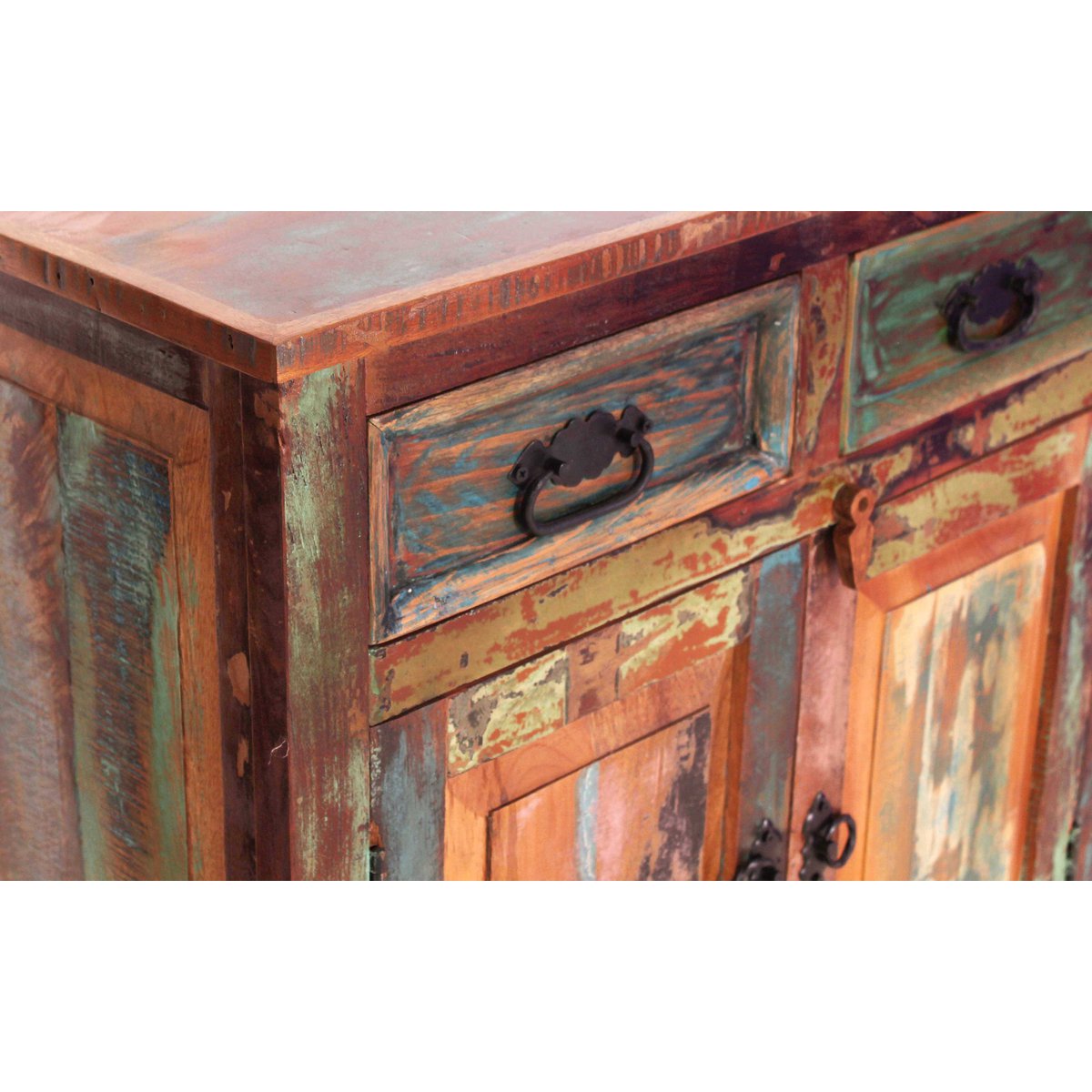 – Ladekast van kleurrijk gerecycled oud hout