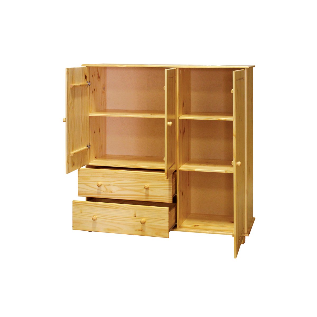 Onze massief grenen ladekast is niet alleen een praktisch meubelstuk, maar ook een stijlvolle blikvanger voor je huis. Met zijn intelligente indeling biedt hij niet alleen veel opbergruimte, maar ook flexibele organisatiemogelijkheden. Het bijzondere aan deze ladekast is de slimme indeling in twee delen: Het smallere deel heeft een deur en twee variabele planken. Het bredere gedeelte is voorzien van twee deuren en een variabele plank, waardoor je extra opbergruimte hebt voor kleding, beddengoed of andere grotere spullen. Bovendien bieden de twee lades met metalen geleiders praktische opbergmogelijkheden voor kleinere spullen. Deze ladekast is gemaakt van hoogwaardig grenenhout en natuurlijk geverfd en maakt indruk door zijn natuurlijke schoonheid en robuustheid. Het gelakte oppervlak beschermt het hout tegen slijtage en maakt het onderhoud eenvoudiger, waardoor de ladekast bijzonder duurzaam is. Ladekast verdeeld in 2 delen, in het smallere deel 1 deur en 2 variabele planken, in het bredere deel 2 deuren met 1 variabele plank, 2 laden met metalen geleiders