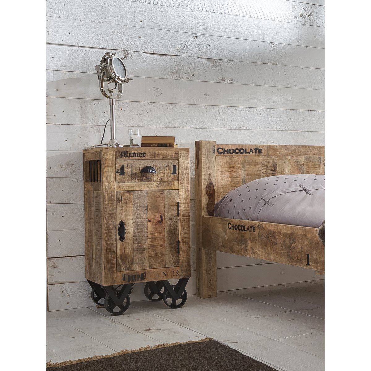 – Ladekast van gelakt mangohout met rustieke en industriële uitstraling