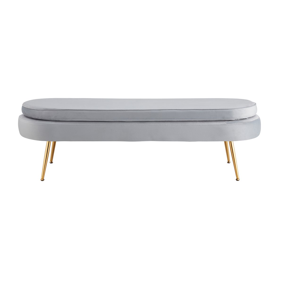Glamoureus, elegant en praktisch: de poef met stijlvolle stoffen bekleding in fluwelen look. Het 1,20 meter lange frame van goudkleurig metaal zorgt niet alleen voor een veilige stand, maar biedt ook een mooi contrast met de bekleding van de kruk. Dankzij de gewatteerde zitting is dit meubel ideaal als extra zitplaats of als voetensteun voor een bank. Maar ook op zichzelf komt deze kruk goed tot zijn recht. De ovale vorm zorgt voor een zachte uitstraling. Deze fauteuilkruk is een echt pareltje en zal een visueel hoogtepunt in uw huis zijn. Vulling polyetherschuim, zithoogte 41 cm, zitcomfort medium stevig, hoes niet afneembaar, lichtbestendigheid 4, pillinghoes 4, slijtvastheid 100.000 schuurcycli, max.