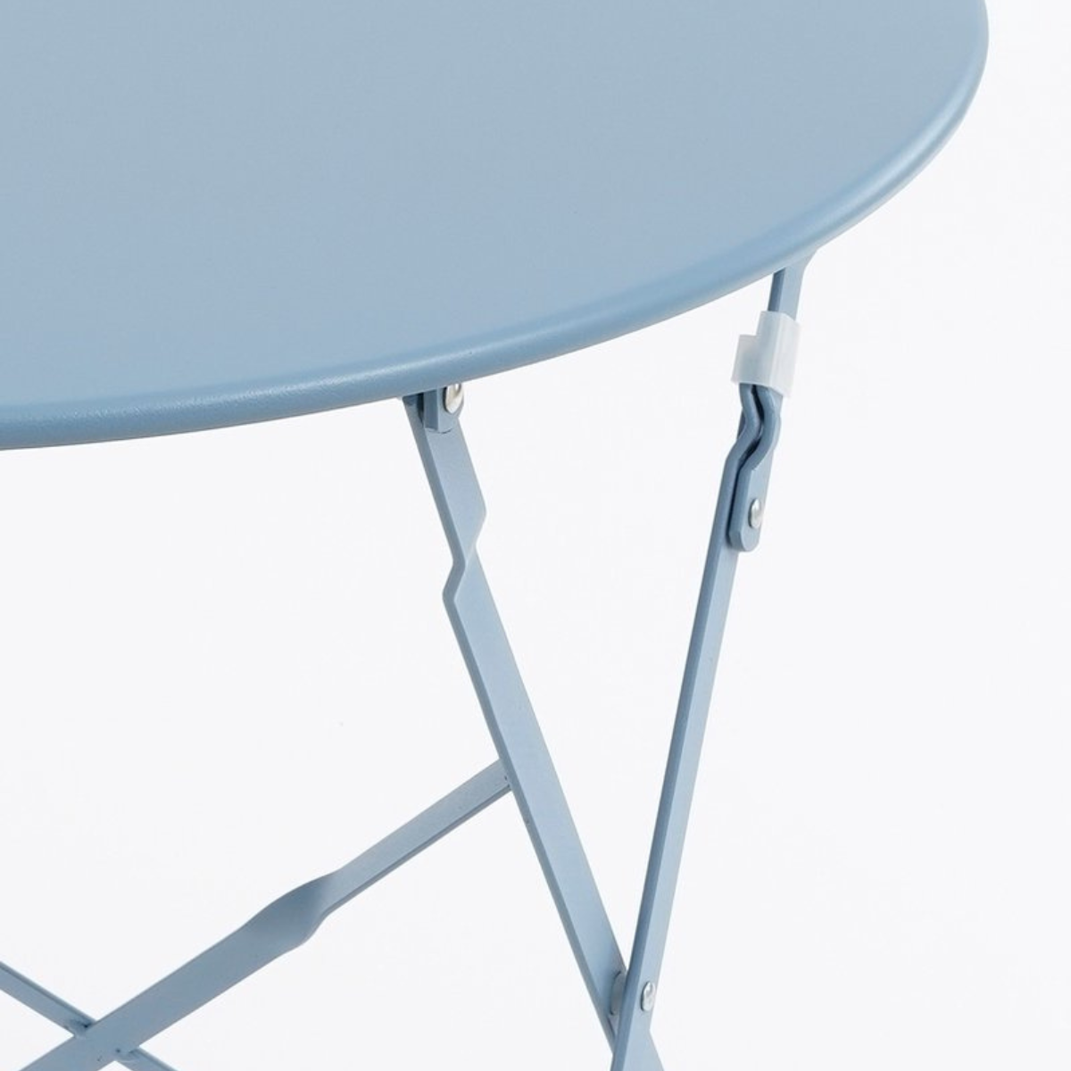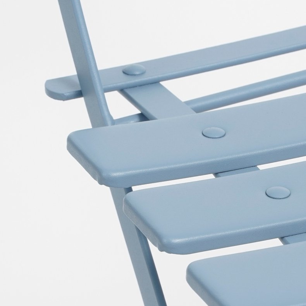 Met de Laurence bistroset van Mica Decorations creëert u eenvoudig een sfeervolle en praktische zitplek voor buiten. Deze 3-delige set bestaat uit een ronde tafel en twee bijpassende stoelen, uitgevoerd in blauw metaal met een beschermende poedercoating. Dankzij het tijdloze ontwerp en het compacte formaat is deze bistroset ideaal voor een balkon, terras of kleine tuin.