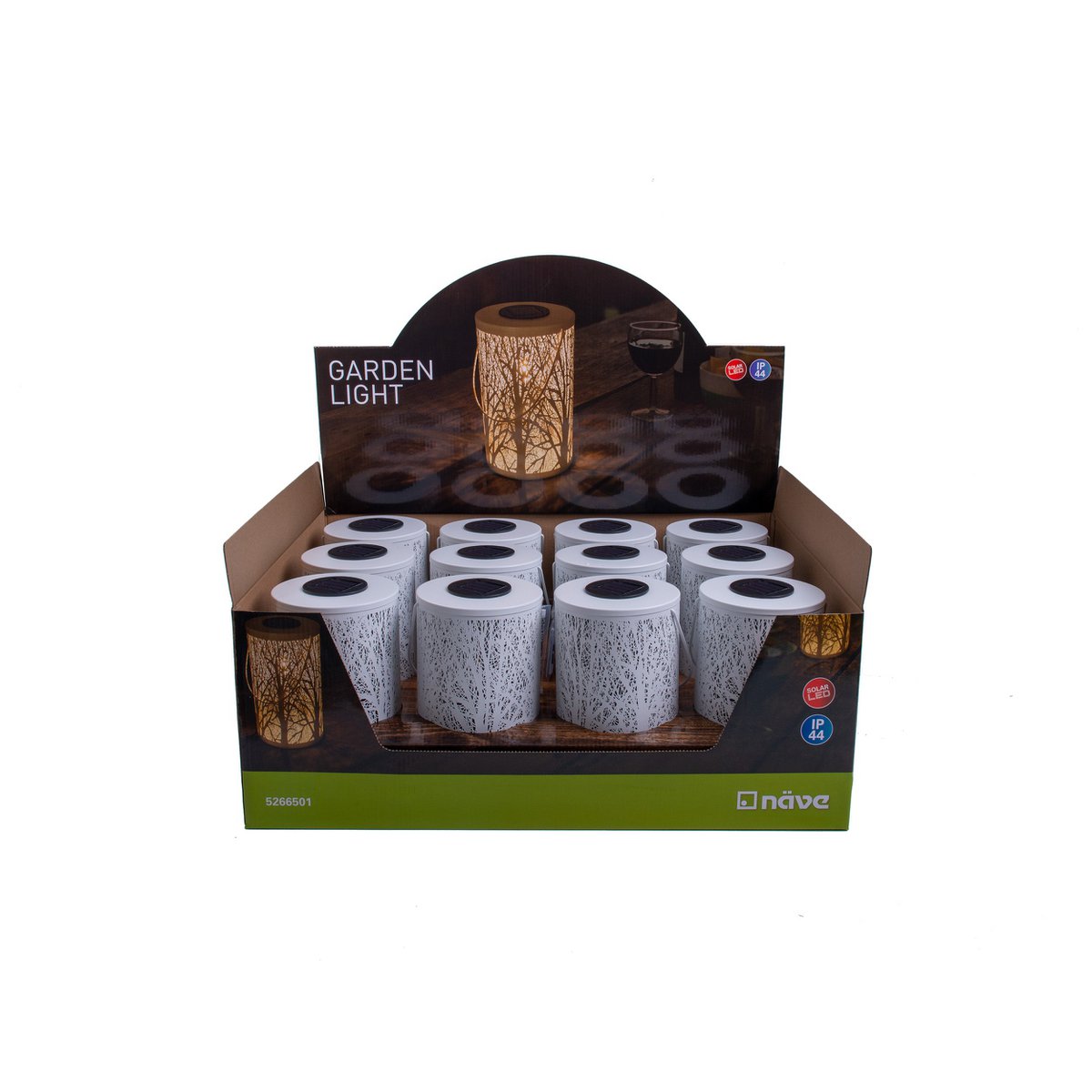 Met het decoratieve zonnelampje in het wit, zorg je voor geweldige lichte spellen in je tuin, het terras of je balkon. Er is een LED in het decollicht dat zorgt voor een warm wit licht. Het bosmotiefpatroon in de lampenkap zorgt voor geweldige, opwindende schaduwspellen in je tuin. De lamp heeft een hoogte van 20 cm, een lengte van 12 cm en een breedte van 12 cm. De zonnemodule laadt de batterij via de zonnestraling en zorgt voor gezellige avonduren in uw tuin.