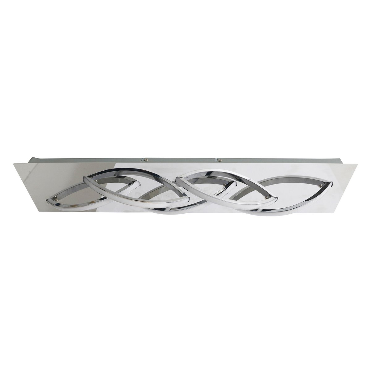 LED plafondlamp “Manchester” incl. 5x LED totaal 17W 3000K; 20.000 uur; 1360lm IP20/SKI energie-efficiëntieklasse G incl. driver 100-240V~ 50/60Hz 26-44V DC I=500mA 3 niveaus dimbaar via wandschakelaar b: 67,5cm; t:14cm; h: 10cm Materiaal: metaal (ijzer, aluminium, RVS), acryl Kleur: chroom, satijn Lichtkleur: warm wit