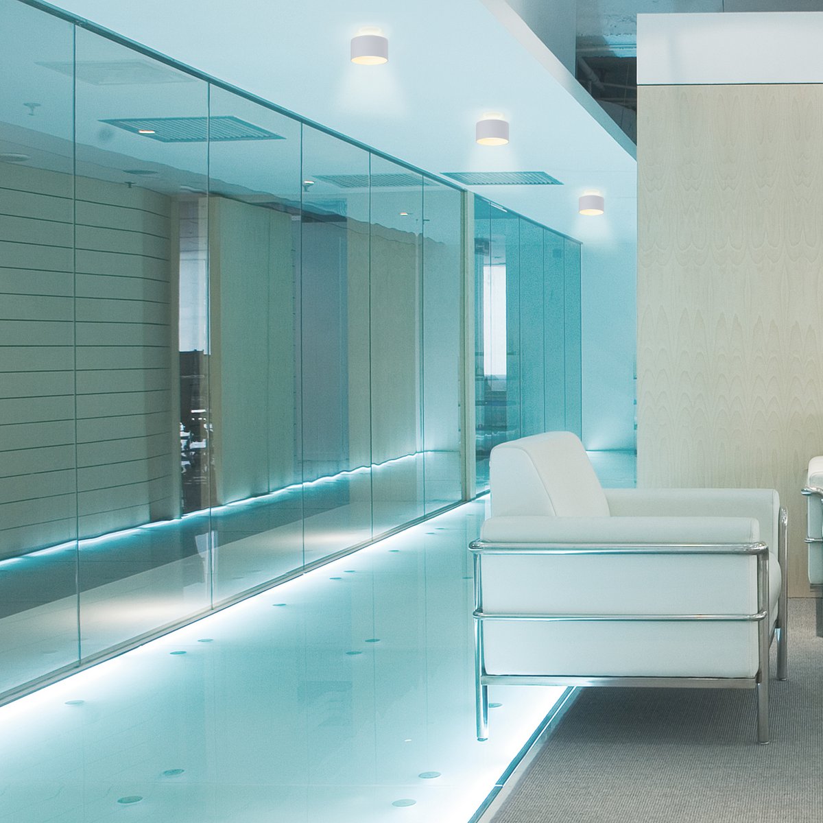 LED spot “Trios” d: 14cm wit Spotlight onder: instelling 1 74x Sanan LEDs 3000K; 990lm; totaal 17W spot boven: instelling 2 24x Sanan LED’s 4000K; 360 lm; totaal 6W spot boven/onder: instelling 3 98 LED’s 3200K; 1350lm; totaal 21W Energie-efficiëntieklasse G Levensduur: ca. 20.000 uur IP20/SKI 220-240V~ 50Hz PF>0,9 Stralingshoek: 120° Voet: d: 7,5 cm Afmetingen: d: 14 cm; h: 9cm Materiaal: gepoederd. Aluminium, kunststof Kleur: wit Lichtkleur: warm wit onderaan; neutraal wit boven