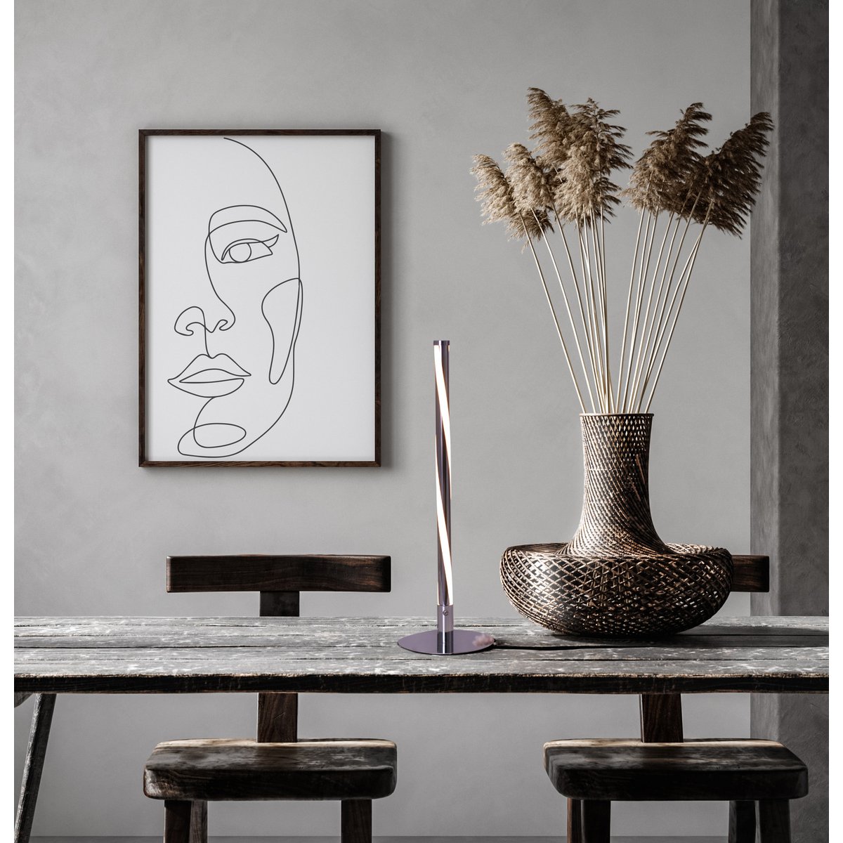 Twee strengen, de ene gemaakt van metaal, de andere van acryl worden gedraaid en vormen een harmonieuze eenheid. De lamp kan worden gedimd in drie fasen met een aanraakdimmer, dus je hebt altijd het licht dat je nodig hebt. Van het werken aan het bureau tot gezellige bankverlichting, alles kan worden geïmplementeerd. Met een levensduur van 20.000 uur geniet je lange tijd van de lamp