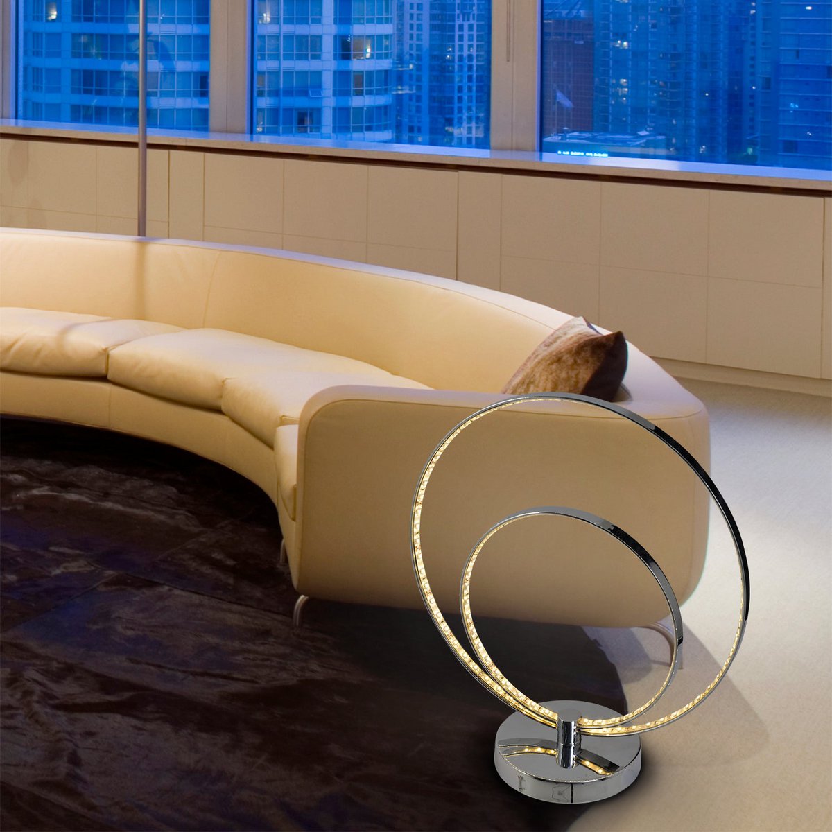 Elegant und funktional präsentiert sich diese tischleucht in glänzendem chrom und wird rasch zum stilvollen mittelpunkt in jedem interieur. Ihr Design, Geprägt von Klaren Linien und Moderner ästhetik, ist eine hommage an Zeitgenössische innenarchitektur. Verspricht sie langleBigkeit und ein dauerhaft makelloses erscheinungsbild. Diese Tischleuchte Verbindet Modern Chic Mit Hher Leuchtkraft und setzt in Jedem Raum Glanzvolle Akztente.