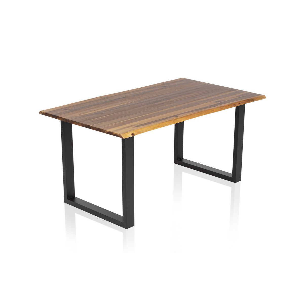 Het zwart gelakte metalen U-frame geeft de tafel een stevige basis en vormt een stijlvol contrast met het warme hout. Dankzij het formaat is deze eettafel ideaal voor 4 tot 6 personen en perfect voor dagelijks gebruik, diners of gezellige momenten met familie en vrienden. Door de combinatie van massief hout en metaal past deze tafel moeiteloos in zowel moderne als industriële interieurs.