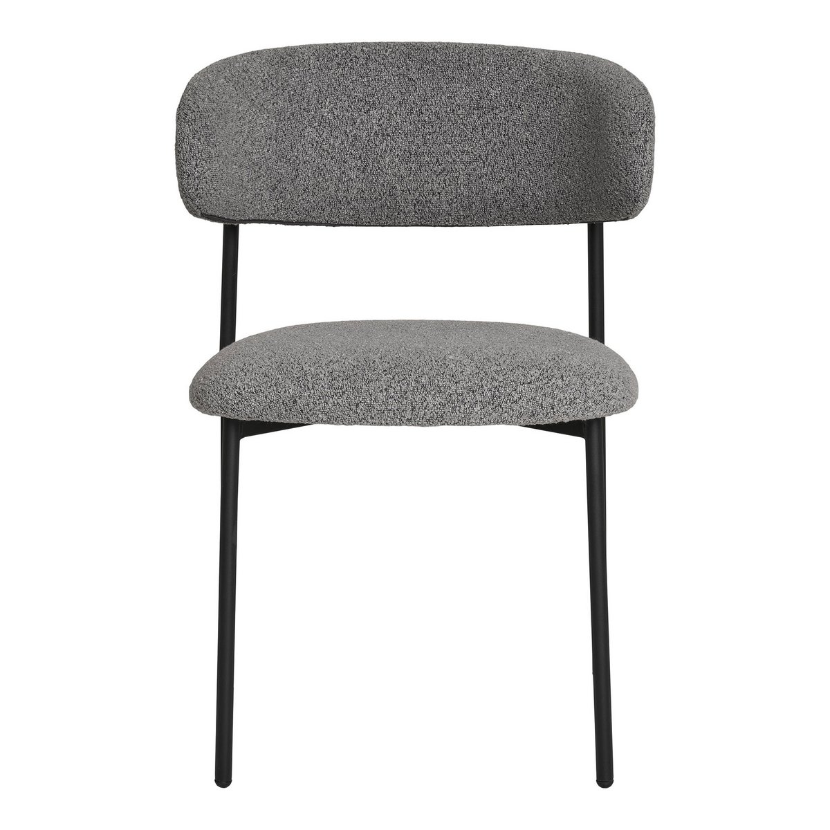 De Mira Dining Chair is een stijlvolle en comfortabele toevoeging aan uw eetruimte. De zachte bouclébekleding en de strakke zwarte metalen poten zorgen voor een moderne en uitnodigende uitstraling. Het comfortabele ontwerp en de stevige constructie van de stoel maken hem perfect voor dagelijks eten en entertainment. Deze stoel wordt geleverd in een set van 2.