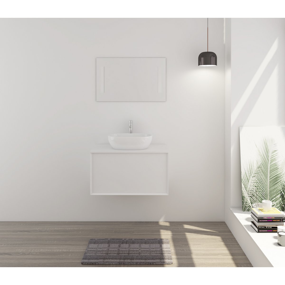 De onderkast is voorzien van een push-to-open functie en biedt voldoende ruimte voor handdoeken, verzorgingsproducten en andere badkamerbenodigdheden. De opzetwaskom is onderhoudsvriendelijk en de spiegel maakt dagelijkse verzorging en styling extra comfortabel.