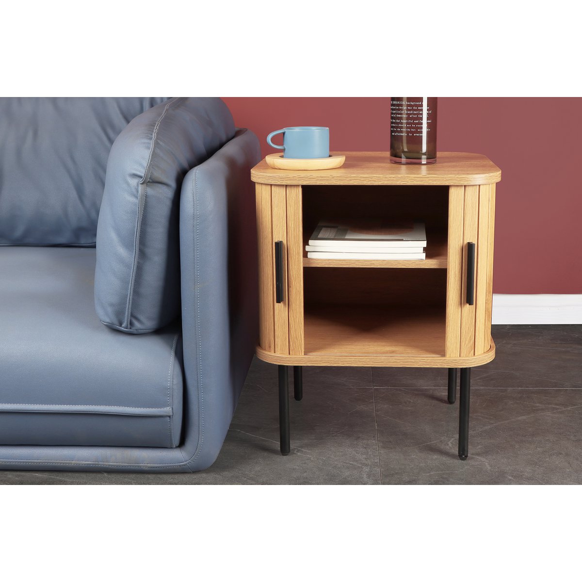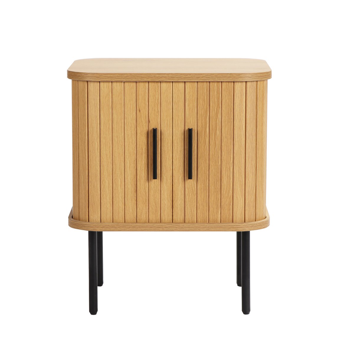 Deze nacht combineert dressoir Scandinavisch ontwerp met functionele elegantie. Gemaakt in natuurlijke eikenkleur, past het perfect in moderne slaapkamers en biedt praktische opslagruimte voor uw persoonlijke objecten. Met poedercoated metalen benen en een front in moderne lamella -look, is het niet alleen functioneel, maar ook een decoratief hoogtepunt. Het nachtelijke dressoir is gemaakt van een robuuste melamineplaat in natuurlijke eikenkleur, die zorgt voor een warm en uitnodigend charisma. De poedercoated metalen benen in het zwart bieden stabiliteit en zetten een modern accent. Zwarte handgrepen op de schuifdeuren onderstrepen het minimalistische en elegante ontwerp. Achter de twee schuifdeuren is een ruime opslagruimte met een praktische vloer die ruimte biedt voor al uw persoonlijke items. Of het nu boeken, kleding of andere alledaagse dingen zijn – hier vindt u de ideale plek voor alles wat u binnen handbereik wilt hebben. Het latfront zorgt voor een moderne structuur en een aantrekkelijke oogstadder. Geïnspireerd door de Scandinavische meubelstijl, overtuigt de nachttabel met zijn duidelijke ontwerptaal en functionele details. De combinatie van natuurlijke houten toon, minimalistisch ontwerp en moderne accenten maakt je een veelzijdig meubelstuk voor elke slaapkamer. Met zijn compacte maat is deze nacht dressoir perfect als zijmeubilair naast het bed, in de gang of in de woonkamer. Het biedt niet alleen opslagruimte, maar ook een stijlvolle manier om uw slaapkamer of andere kamers elegant aan te vullen. De nachtkast van laden in natuurlijke eiken kleur met zwarte metalen poten en moderne latfront is de perfecte keuze voor iedereen die Scandinavisch ontwerp en praktische functionaliteit waardeert. Uw tijdloze look en goed doordachte opslagruimte -oplossing maakt u een onmisbaar meubelstuk voor uw huis. 1 verdieping achter de deuren, handgreep kleur: zwart, handgreepmateriaal: aluminium, hoogte voeten: 20 cm, voeten metaalpoeder -gecoat