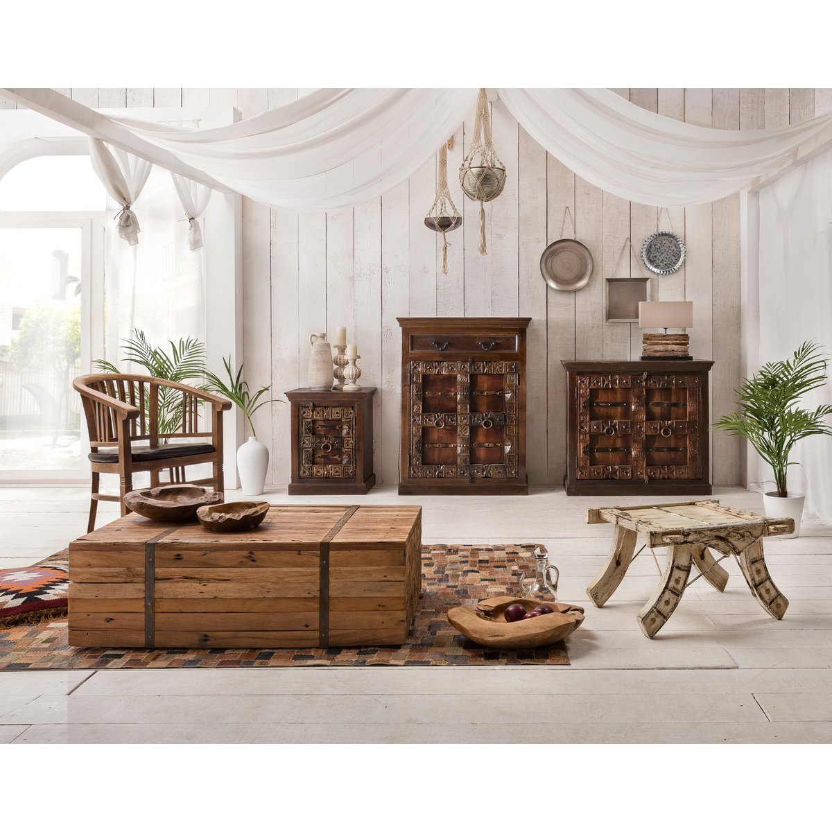 – Nachtkastje van gerecycled oud hout met antieke koloniale uitstraling