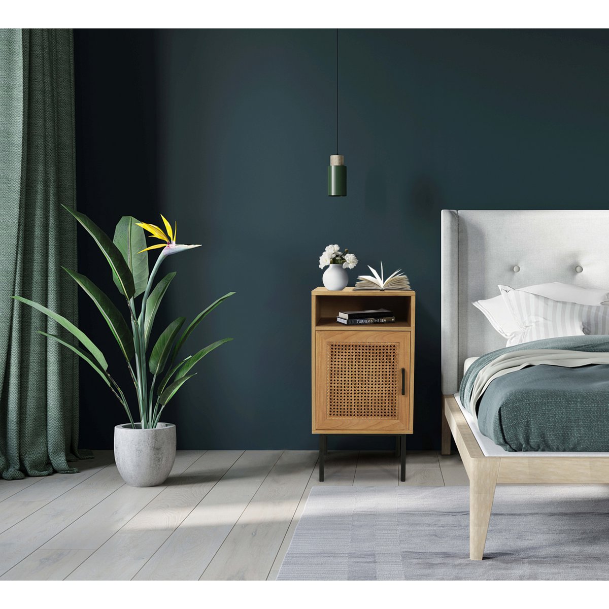 Deze kleine, naturelkleurige ladekast met een rotanfront in traditioneel weefsel brengt retro-chic in je huis. De ladekast biedt ondoorzichtige ruimte voor je spullen achter een deur, en daarboven bevindt zich een open vak voor snelle toegang tot bepaalde gebruiksvoorwerpen of decoratieve voorwerpen. De meubels uit deze serie zijn met veel vakmanschap in Azië gemaakt. Ze zijn uniek en overtuigen door hun individuele design en karakter. Gebruikssporen en een vintage look kenmerken het nachtkastje, in tegenstelling tot de Europese serieproductie. De ladekast is zeer veelzijdig en kan in allerlei kamers worden gebruikt. Het is niet alleen praktisch als nachtkastje in de slaapkamer, maar ook in de woon- en eetkamer, in kleine gangen of hallen en brengt een bijzondere flair in de kamer.
