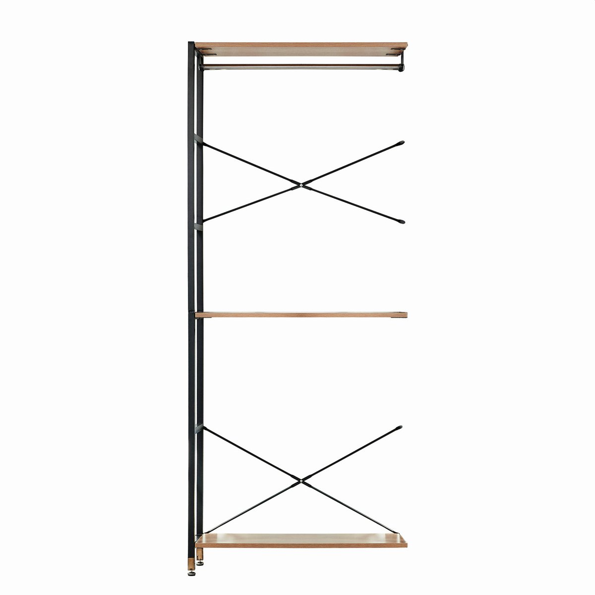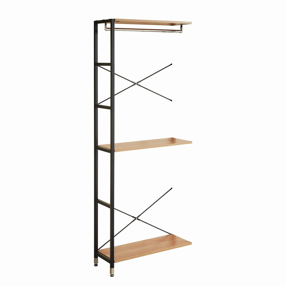 Dit open kledingrek is een slimme oplossing voor wie extra opbergruimte wil combineren met een luchtige uitstraling. Met een hoogte van 210 cm biedt het meubel volop ruimte voor kleding, boeken, manden en decoratieve accessoires. Dankzij de geïntegreerde kledingstang kun je kleding netjes ophangen, terwijl de drie legplanken extra plaats bieden voor overzichtelijke opslag.