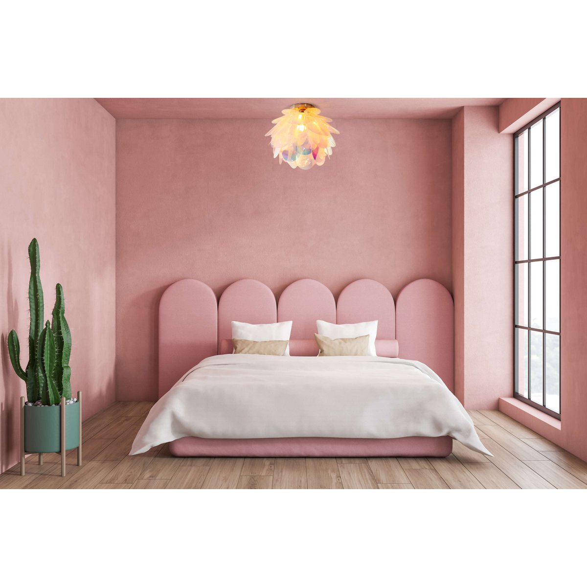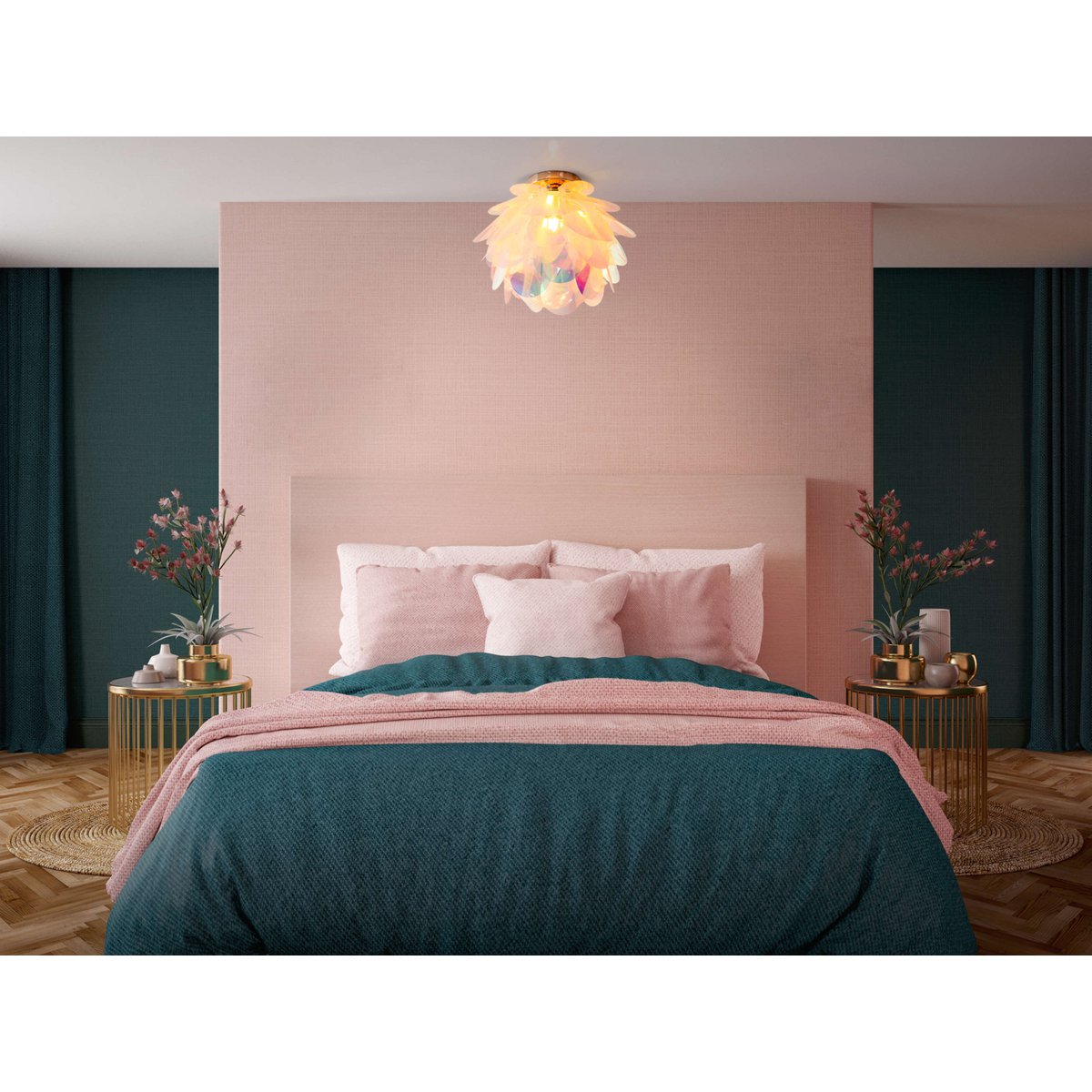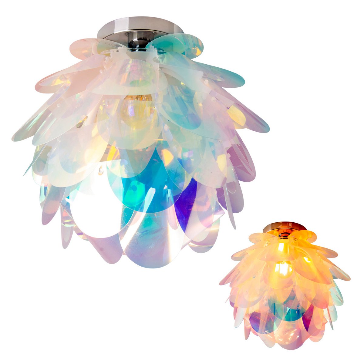 De plafondlamp “fora” straalt zijn vriendelijke licht uit. Het onderscheidende ontwerp van dit decoratieve licht is als een sprookjesbloem met veel delicate bloemblaadjes, die zijn gemaakt van iriserend transparant plastic. “Fora” is een prachtige oogstadder in de gezellige woonkamer, in de romantische slaapkamer of zelfs met kleine prinsessen in de kinderkamer.