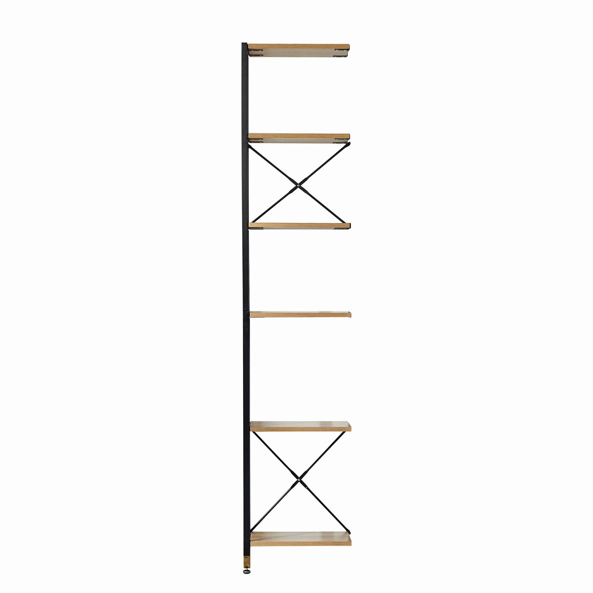 Nu komt er orde uit de chaos. Met dit aanbouwrek creëer je extra opbergruimte en is ruimtegebrek in de toekomst geen probleem meer. Met een hoogte van 210 cm biedt de plank je voldoende ruimte voor bijvoorbeeld boeken of decoratieve spullen. Het frame is gemaakt van metaal. De zes planken zijn gemaakt van MDF met acaciadecor. Dankzij de open indeling van de staande plank is deze ook te gebruiken als roomdivider. Met zijn breedte van 42,5 cm is hij ideaal voor kleine ruimtes. De plank kan dienen als aanbouwelement.