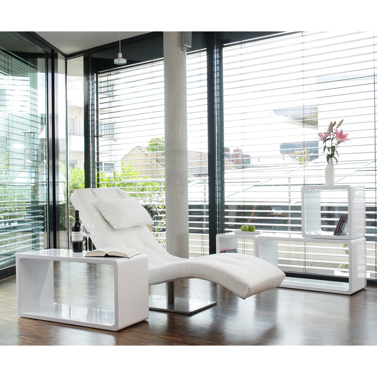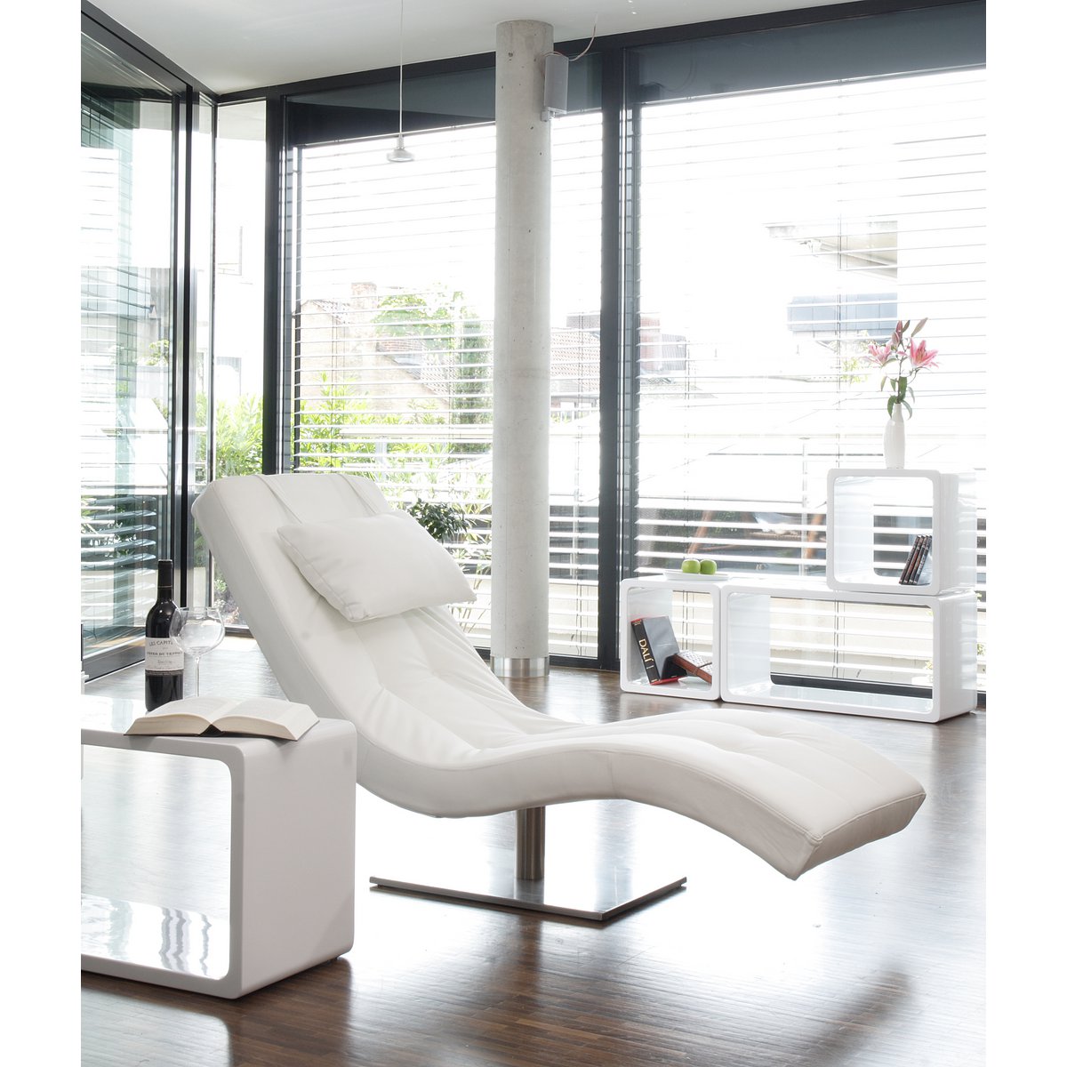 Deze ligstoel zorgt voor heerlijke momenten van welzijn. De relaxligstoel in modern design overtuigt door zijn elegante kunstleren bekleding, een stabiel roestvrijstalen onderstel en een ergonomisch gebogen ligvlak. Het onderstel zorgt niet alleen voor een stabiele en wiebelvrije stand, maar harmonieert ook perfect met de kunstleren bekleding van het ligbed. Een geïntegreerd nekkussen zorgt voor extra comfort. Dankzij het comfortabel gevoerde ligvlak ervaart u een nieuw soort zitmogelijkheid die u ontspanning van een klasse apart biedt. Het gestoffeerde ligbed scoort met zijn ergonomische ligoppervlak, comfortabele vulling en duurzaamheid. Dompel jezelf onder in de sferen van de diepste ontspanning. Ergonomisch gebogen ligvlak, met nekkussen, bekleding: 100% polyurethaan, max. draagvermogen: ca. 125 kg, afstand van vloer tot onderkant bed bij het voeteneinde: ca. 13 cm cm, in de ligstoeluitsparing: ca. 22 cm, bij het hoofdbord: ca. 75 cm, hoogte van de bovenkant van het ligbed bij het voetbord: ca. 25 cm, in het midden: ca. 34 cm ca. 30 cm, bij het hoofdbord: ca. 83 cm.